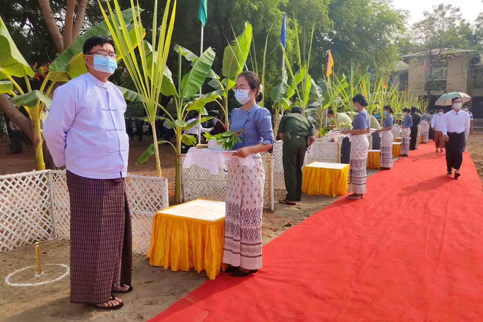 ထို့နောက် မကွေးတိုင်းဒေသကြီး စီမံအုပ်ချုပ်ရေးကောင်စီဥက္ကဌ ဦးတင့်လွင်၊ တိုင်းဒေသကြီး စီမံအုပ်ချုပ်ရေးကောင်စီ အဖွဲ့ဝင်(၁) ဗိုလ်မှူးကြီးမင်းဦး၊ တိုင်းဒေသကြီး စီမံအုပ်ချုပ်ရေးကောင်စီ အတွင်းရေးမှူး ဦးသန်းဆွေဝင်း၊ ခရိုင်စီမံအုပ်ရေးအဖွဲ့ ဥက္ကဌ ဦးစန်းဌေး၊ ခရိုင်စီမံအုပ်ရေးအဖွဲ့ အဖွဲ့ဝင်(၁) ဒုတိယဗိုလ်မှူးကြီးတင့်ကျော်၊ ဒုတိယခရိုင်အုပ်ချုပ်ရေးမှူး ဦးကျော်ဇေယျ၊ အေဝမ်း(A1)ဆောက်လုပ်ရေး ကုမ္ပဏီဥက္ကဌ ဦးရန်ဝင်း၊ အေဝမ်း(A1)ဆောက်လုပ်ရေးကုမ္ပဏီ ဒါရိုက်တာ ဦးအာကာကြိုင်၊ မြို့နယ်စီမံအုပ်ချုပ်ရေးအဖွဲ့ဥက္ကဌ ဦးသိန်းဇော်ကံတို့က သတ်မှတ်ထားသော နေရာအသီးသီးတွင် ပန္နက်တိုင်များအား စိုက်ထူပေးခဲ့ပြီး အမွေးနံ့သာရေများ ပက်ဖျန်း ပေးခဲ့ကြသည်။