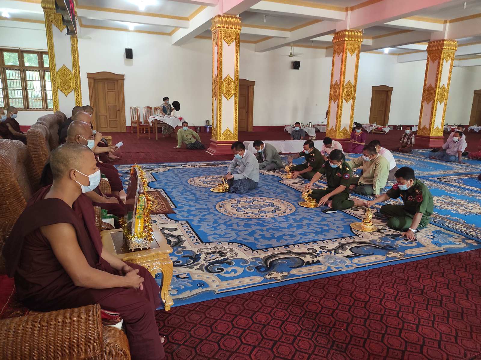 ရှေးဦးစွာ မဟာသုန္ဒရာမ ကျောင်းတိုက်ဆရာတော်ထံမှ ငါးပါးသီလခံယူ ဆောက်တည်ပြီး မန္တလေးတိုင်းဒေသကြီး စီမံအုပ်ချုပ်ရေးကောင်စီဥက္ကဌ ဦးမောင်ကိုနှင့် တာဝန်ရှိသူများက လှူဖွယ်ပစ္စည်းများ ဆက်ကပ်လှူဒါန်းသည်။ ထို့နောက် မဟာသုန္ဒရာမ ကျောင်းတိုက်ဆရာတော်မှ ရေစက်ချတရားချီးမြှင့်သည်။ ၄င်းနောက် မန္တလေးတိုင်း ဒေသကြီး စီမံအုပ်ချုပ်ရေးကောင်စီဥက္ကဌ ဦးမောင်ကိုနှင့် တာဝန်ရှိသူများက ဆရာတော်/ သံဃာတော်များအား နေ့ဆွမ်းဆက်ကပ် လှူဒါန်းသည်။