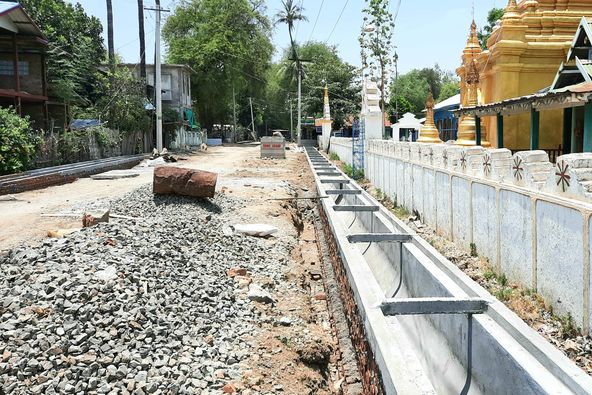 အဆိုပါ အုတ်ရေနုတ်မြောင်းများ ပြုလုပ်ဆောင်ရွက်ခြင်းကို မြို့နယ်စည်ပင်သာယာရေးအဖွဲ့က ၂၀၂၀-၂၀၂၁ ဘဏ္ဍာရေးနှစ်၊ ငွေလုံးငွေရင်း ခွင့်ပြုရန်ပုံငွေဖြင့် မြို့ပြဖွံ့ဖြိုးရေးအတွက် အုတ်ရေမြောင်းဆောင်ရွက်ခြင်းလုပ်ငန်း (၁၂)ခု အကောင်အထည်ဖော် ဆောင်ရွက် သွားမည်ဖြစ်ကြောင်းသိရသည်။ ယင်းအုတ်ရေမြောင်းပြုလုပ်ခြင်းလုပ်ငန်း(၁၂)ခုအား တင်ဒါစနစ်ဖြင့် တက်လူထိပ်ကုမ္ပဏီ၊ SHWE GROUP ကုမ္ပဏီနှင့် KO MOE ကုမ္ပဏီတို့အား တာဝန်ယူဆောင်ရွက်လုပ်ကိုင်ခွင့်ပြုထားကြောင်း သိရသည်။ ထိုသို့ ရေစီး ရေလာကောင်းမွန်ရေးအတွက် အုတ်ရေမြောင်းများ ပြုလုပ်ခြင်းကို ပွင့်ဖြူမြို့၊ မြို့ပတ်လမ်းအရှည်ပေ ၉၆၀ အား ငွေလုံးငွေရင်း ခွင့်ပြုရန်ပုံငွေကျပ် ၂၈ ဒသမ ၅၀၀ သန်းဖြင့် အကျယ် ၅ ပေ ၊ အနက် ၄ ပေ ၆ လက်မ အုတ်ရေမြောင်းပြုလုပ်ခြင်း ၊ ငွေလုံးငွေရင်း ခွင့်ပြုရန်ပုံငွေကျပ် ၁၁ ဒသမ ၀၀ သန်းဖြင့် ပွင့်ဖြူမြို့ သန့်စင်လမ်းမှ မြို့ပတ်လမ်းအထိ အရှည်ပေ ၄၄၀ ပေ အား အကျယ် ၂ ပေ ၊ အနက် ၂ ပေ ၆ လက်မ အုတ်ရေမြောင်းပြုလုပ်ခြင်းနှင့် ခွင့်ပြုရန်ပုံငွေကျပ် ၁၅ ဒသမ ၉၉၆ သန်းဖြင့် သရဖီလမ်းအရှည်ပေ ၉၂၀ ပေ အား အကျယ် ၂ ပေ ၆ လက်မ ၊ အနက် ၃ ပေ အုတ်ရေမြောင်းပြုလုပ်ခြင်းကို တက်လူထိပ်ကုမ္ပဏီအား တာဝန်ယူဆောင်ရွက်စေခဲ့ရာ လုပ်ငန်းများပြီးစီးသွားပြီဖြစ်ကြောင်း ၊ ငွေလုံးငွေရင်း ခွင့်ပြုရန်ပုံငွေကျပ် ၂၀ ဒသမ ၄၀၀ သန်းဖြင့် ပွင့်ဖြူမြို့ ၊ ချယ်ရီလမ်း အရှည်ပေ ၄၄၈ ပေ အား လမ်းဘေး(ဝဲ ၊ ယာ) တစ်ဖက်စီတွင် အကျယ် ၂ ပေ ၊ အနက် ၃ ပေ အုတ်ရေမြောင်း ပြုလုပ်ခြင်းအား တင်ဒါစနစ်ဖြင့် SHWE GROUP ကုမ္ပဏီက တာဝန်ယူဆောင်ရွက်ခဲ့ရာ လုပ်ငန်းပြီးစီးသွားပြီဖြစ်ကြောင်းနှင့် အလားတူ ငွေလုံးငွေရင်း ခွင့်ပြုရန်ပုံငွေကျပ် ၂၉ ဒသမ ၈၂၉ သန်းဖြင့် ရှောက်တော လမ်း အရှည်ပေ ၁၃၀၀ အား အကျယ် ၂ ပေ ၊ အနက် ၃ ပေ အုတ်ရေမြောင်းပြုလုပ်ခြင်းကို KO MOE ကုမ္ပဏီက တာဝန်ယူဆောင်ရွက်ခဲ့ရာ လုပ်ငန်း ဆောင်ရွက်ပြီးစီးသွားပြီဖြစ်ကြောင်း သိရသည်။ ကျန်ရှိသည့် အုတ်ရေမြောင်း ဆောင်ရွက်နေမှုလုပ်ငန်း သတ်မှတ်ကာလ အတွင်း လုပ်ငန်းအရည်အသွေးပြည့်မီစွာ ဆောင်ရွက်ပြီးစီးနိုင်ရေးအတွက် မြို့နယ်စည်ပင်အမှုဆောင်အရာရှိ လက်ထောက်ညွှန်ကြားရေးမှူး ဒေါ်ဆွေဆွေဝင်း ၏ ကြီးကြပ်မှုဖြင့် တာဝန်ခံအင်ဂျင်နီယာများက အနီးကပ်ကြီးကြပ် ဆောင်ရွက်လျက်ရှိကြောင်း သိရသည်။