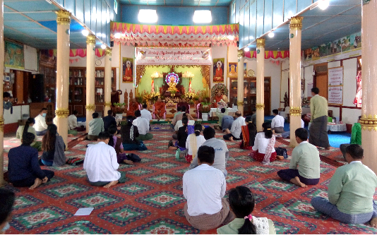 ဆက်လက်၍ ဆရာတော် သံဃာတော်အရှင်သူမြတ်များက (ကိုဗစ်−၁၉)ကာလနှင့် လျော်ညီစွာ ရတနာသုတ် ပရိတ်တရားတော်များကို ချီးမြှင့်ကြသည်။ ထို့နောက်ခရိုင် စီမံခန့်ခွဲမှုကော်မတီဥက္ကဋ္ဌ ဦးမောင်ထူးနှင့် ခရိုင်အဆင့်၊ မြို့နယ်အဆင့် ဌာနဆိုင်ရာအကြီးအကဲများက ဌာနအလိုက် ဝါဆိုသင်္ကန်းနှင့် လှူဖွယ်ဝတ္ထုပစ္စည်းများကို အသီးသီး ဆပ်ကပ် လှူဒါန်းကြသည်။