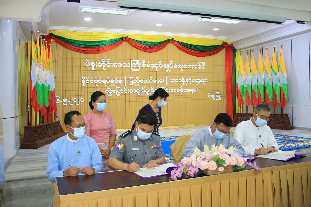 ပဲခူးတိုင်းဒေသကြီးစီမံအုပ်ချုပ်ရေးကောင်စီရုံး၊ တော်ဝင်ဟံသာအစည်းဝေးခန်းမ၌ မေ ၆ ရက် နံနက် ၁၀ နာရီက ပြည်မြို့ရှိ နိုင်ငံပိုင်ရုပ်ရှင်ရုံ(ပြည်တော်အေး)၏ တာဝန်နှင့်ဝတ္တရား လွှဲပြောင်းခြင်းနှင့် စာချုပ် ချုပ်ဆိုခြင်း အခမ်း အနားကျင်းပခဲ့သည်။