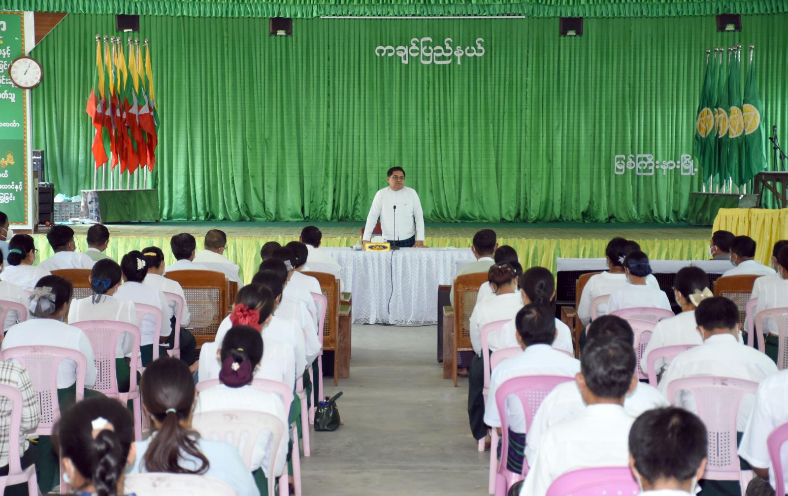 ထက်၊ လယ်၊ မူကျောင်းအုပ်များနှင့် တွေ့ဆုံရာတွင် ပြည်နယ်စီမံအုပ်ချုပ်ရေးကောင်စီ ဥက္ကဋ္ဌ ဦးခက်ထိန်နန်က မိမိတို့ သား/သမီးများ၏ ပညာရေးသည် မိမိတို့ ပြည်နယ်၏ အနာဂတ်အတွက် အရေးကြီးသလို လူငယ်/လူရွယ်များ၏ ပညာရေးသည်လည်း နိုင်ငံ၏ အနာဂတ်အတွက် အရေးကြီးပါ ကြောင်း၊ ယနေ့ ဆရာ၊ ဆရာမများအနေဖြင့် မိမိတို့ သား/သမီးများ၏ အနာဂတ်အရေးအတွက် သင်ကြားရေးဖြင့် လမ်းမှန်ရောက်အောင် ပြုစုပျိုးထောင်ပေးနိုင်ရေးသည် အရေးကြီးပါကြောင်း၊ အနာဂတ်သား/ သမီးများ၏ ပညာရေးတွင် နောက်ကျကျန်ခြင်းမရှိစေရေးနှင့် ပညာသင်ကြားခွင့်ရရှိ ရေးအတွက် ကျောင်းများ ပြန်လည်ဖွင့်လှစ်နိုင်ရေးကို မိမိတို့အနေဖြင့် ကြိုးစားပြီးတာဝန်ယူဆောင် ရွက်ကြရမှာဖြစ်ကြောင်း၊ မိမိတို့ပြည်နယ်စီမံအုပ်ချုပ်ရေးကောင်စီအနေဖြင့် လိုအပ်သည့် အခက်အခဲ များနှင့် လုံခြုံရေးဆိုင်ရာကိစ္စရပ်များကို အားလုံးနှင့် လက်တွဲညှိနှိုင်း၍ တာဝန်ယူဆောင်ရွက်ပေးသွား မည်ဖြစ်ကြောင်း အားပေးတိုက်တွန်းမှာကြားသည်။