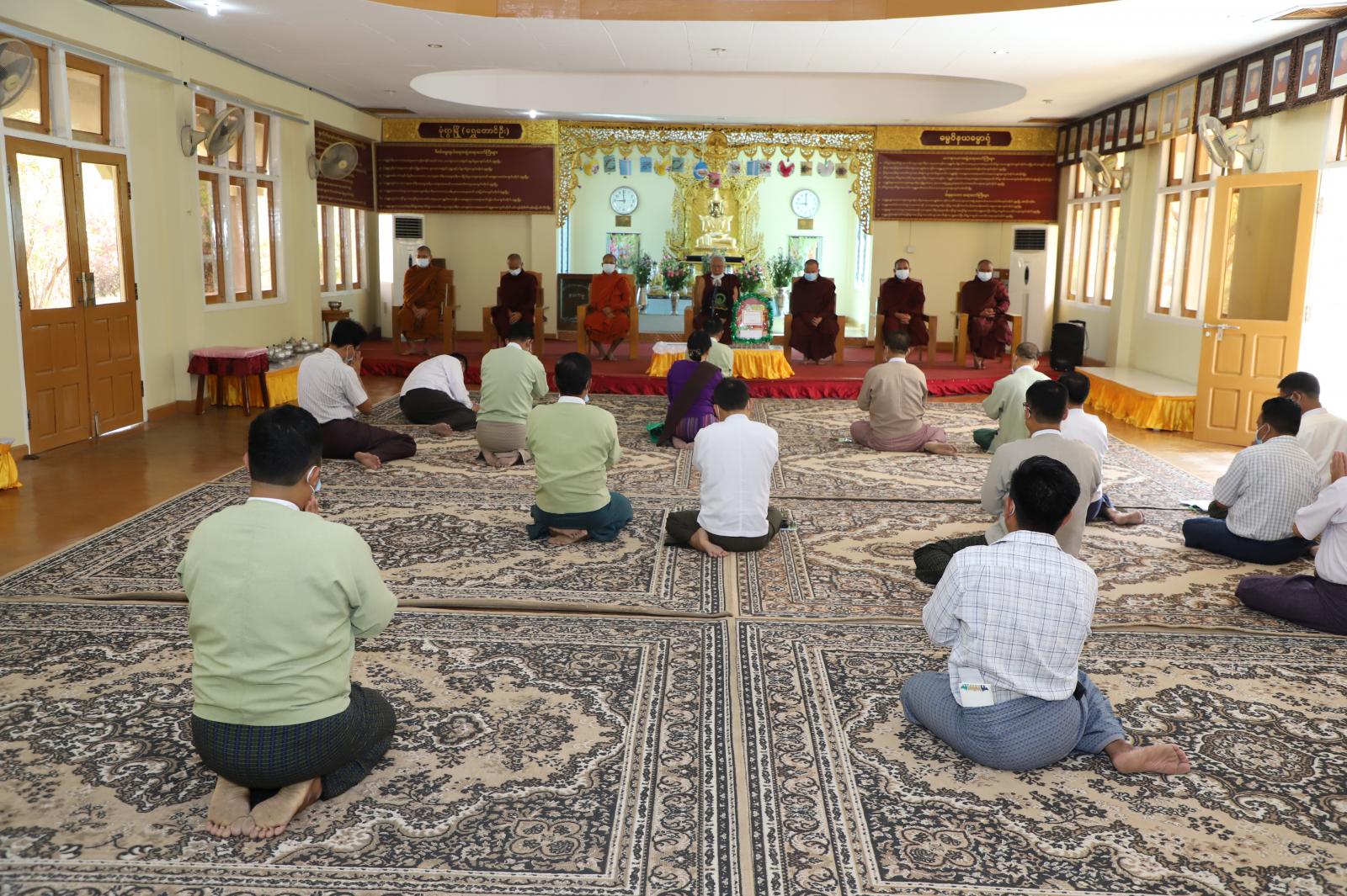 ထို့နောက် မုံရွာမြို့၊ ရန်ကင်းကျောင်းတိုက်မှ ဒွီပိဋကဓရ၊ ဒွီပိဋက ကောဝိဒ၊ အဂ္ဂမဟာပဏ္ဍိတ ဘဒ္ဒန္ဓပညာဝံသ ဆရာတော်ကြီးထံတော်မှ တိုင်းဒေသကြီး စီမံအုပ်ချုပ်ရေးကောင်စီ ဥက္ကဋ္ဌ ဦးမောင်မောင်လင်းနှင့် ဧည့်ပရိတ်များက (၅)ပါးသီလ ခံယူဆောက်တည်ကြပြီး တိုင်းဒေသကြီး စီမံအုပ်ချုပ်ရေးကောင်စီ ဥက္ကဋ္ဌ နှင့် အဖွဲ့ဝင်များ၊ အလှူရှင်များက ဆရာတော်ကြီးနှင့် စာဖြေသံဃာတော် (၆)ပါးတို့အား လှူဘွယ်ပစ္စည်းများနှင့် နဝကမ္မဝတ္တုငွေများ ဆပ်ကပ်လှူဒါန်းကြသည်။