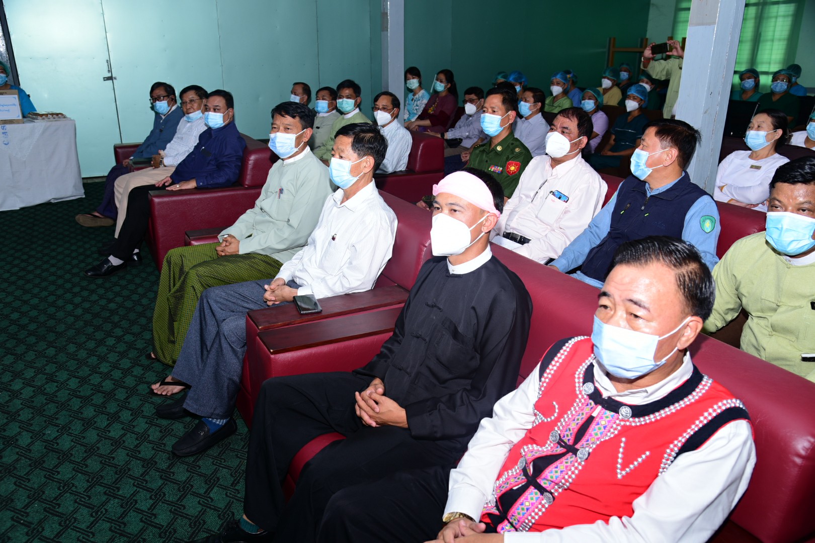 ဆက်လက်၍ ရှမ်းပြည်နယ်စီမံအုပ်ချုပ်ရေးကောင်စီမှ တာဝန်ထမ်းဆောင်နေသည့် ဆရာဝန်၊ ဆရာမများအား ခေါက်ဆွဲခြောက်၊ ကြက်ဥ၊ ငါးဘူးတို့ကို ပြည်နယ်စီမံအုပ်ချုပ်ရေးကောင်စီ ဥက္ကဋ္ဌ ဒေါက်တာကျော်ထွန်းက ပေးအပ်ရာ လားရှိုးပြည်သူ့ဆေးရုံအုပ်ကြီး ဒေါက်တာဉာဏ်မြင့်က လက်ခံရယူပြီး ကျေးဇူးတင်စကား ပြန်လည်ပြောကြားကာ ပြည်နယ် စီမံအုပ်ချုပ်ရေးကောင်စီဥက္ကဋ္ဌနှင့် အဖွဲ့ဝင်များသည် ဆေးရုံတွင် လာရောက်ကုသနေသော လူနာများအား လှည့်လည်ကြည့်ရှု၍ ထောက်ပံ့ပစ္စည်းများ ပေးအပ်ခဲ့သည်။