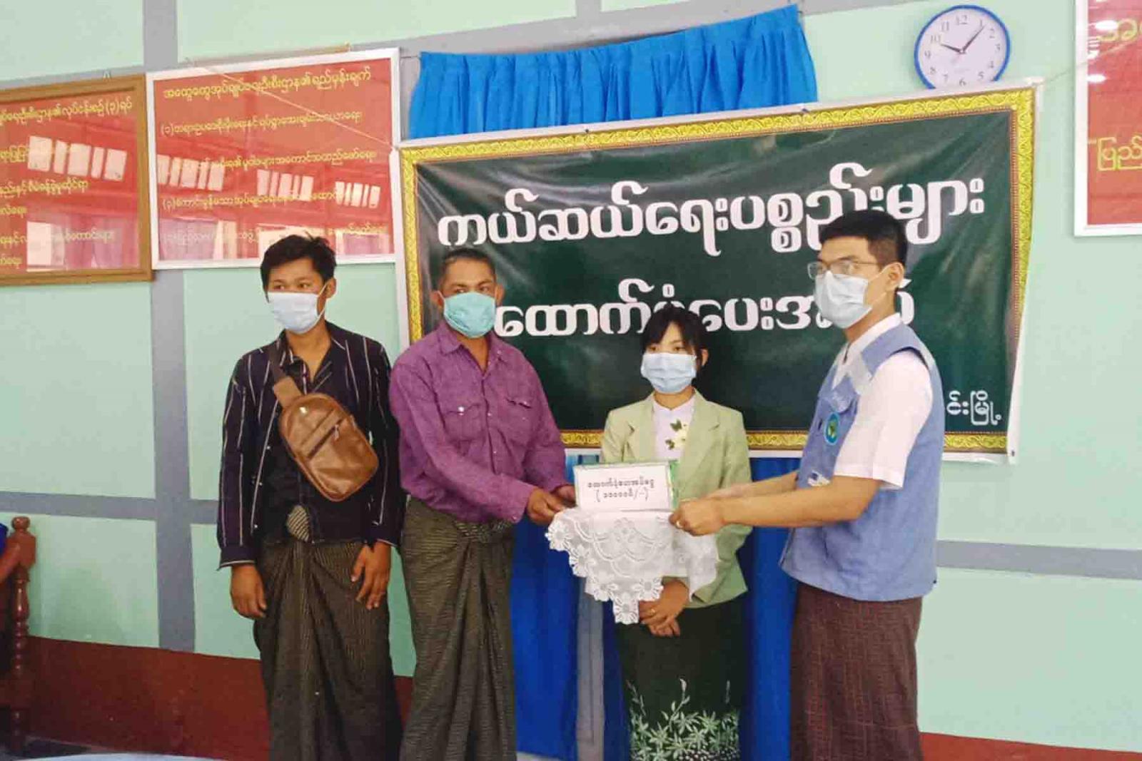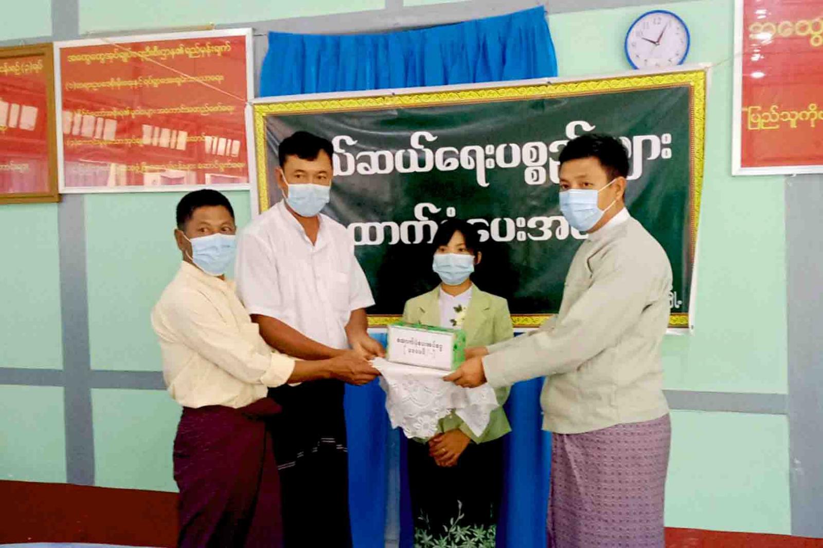လေဘေးသင့်ပြည်သူများအား ထောက်ပံ့ပေးအပ်ရာတွင် မြို့နယ် စီမံ အုပ်ချုပ် ရေး အဖွဲ့ဥက္ကဋ္ဌ ဦးနေလင်းနိုင် က မိုးဦးကာလများတွင် သဘာဝဘေးအန္တရာယ် များ ကျရောက်လေ့ရှိသဖြင့် ကျေးလက်နေပြည်သူများအနေဖြင့် ထိခိုက်မှု အန္တရာယ်ကင်းဝေးစေရေး ကြိုတင်ကာကွယ်ရေးလုပ်ငန်းများ ဆောင်ရွက်သွား ကြစေလိုကြောင်းနှင့် သဘာဝဘေး အန္တရာယ်နှင့် ကြုံတွေ့လာပါက သက်ဆိုင်ရာ ဌာနများနှင့် ချိတ်ဆက်၍ သတင်းပေးပို့အကူအညီရယူသွားကြရန် ဆွေးနွေး မှာကြားသည်။