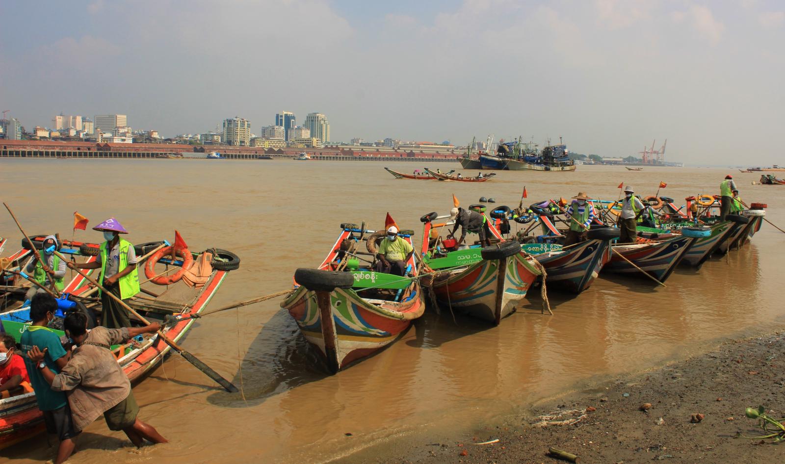 “ဒီနေ့ နံနက် ၆ နာရီ ၁၅ မိနစ် အချိန်ကျော်လောက်ကဘဲ ကမာကသွယ်ကူးတို့ဆိပ်၊ စက်မြေကူးတို့ဆိပ်၊ မှော်စက်ကူး တို့ဆိပ်၊ ကမာကဆစ်ကူးတို့ဆိပ်၊ ဆာပါချောင်းကျောင်းစု ကူးတို့ဆိပ် ကနေ ရန်ကုန်ဘက်ခြမ်း (စဉ့်အိုးတန်း) ၊ မော်တင်လမ်းသစ်၊ မော်တင်(ကိုင်းတန်းအမှတ်-၂) ဆိပ်ကမ်းတို့ကို ပြေးဆွဲပို့ဆောင်နေတဲ့ စက်တပ်သမ္ဗန်တွေအနေနဲ့ ခေတ္တပိတ်ထားခဲ့ရတယ်၊ မိနစ် ၄၀ ကျော်လောက် စောင့်ဆိုင်းခဲ့ရတယ်၊ သိပ်မကြာဘူး ၇ နာရီကျော်လောက်မှာ စက်တပ်သမ္ဗန်များ ပြန်လည်ပြေးဆွဲလို့ ရသွားလို့ ခရီးသည်တွေကို ပုံမှန်ပို့ဆောင်ပေးပါတယ်၊ ဒီဘက်ခြမ်းဖြစ်တဲ့ တံလျှပ်ကူးတို့ဆိပ်၊ ကမာအောင်ကူးတို့ဆိပ်၊ ရေကန်ကူးတို့ဆိပ်၊ သမ္မတကမ်းခြေ ကူးတို့ဆိပ်တို့က ဗိုလ်တစ်ထောင် သမ္ဗန်ဆိပ်နဲ့ ပန်းဆိုးတန်းဆိပ်တို့ကို ပြေးဆွဲနေမှုက ပိတ်ထားခြင်း မရှိဘူး၊ ပုံမှန်ဖွင့်ပြီးတော့ ခရီးသည်တွေကို ပို့ဆောင်ပေးပါတယ်” ဟု မြို့နယ်စက်တပ် ရေယာဉ်ကြီးကြပ်ရေးအဖွဲ့မှ တာဝန်ရှိသူ တစ်ဦး က ပြောသည်။
