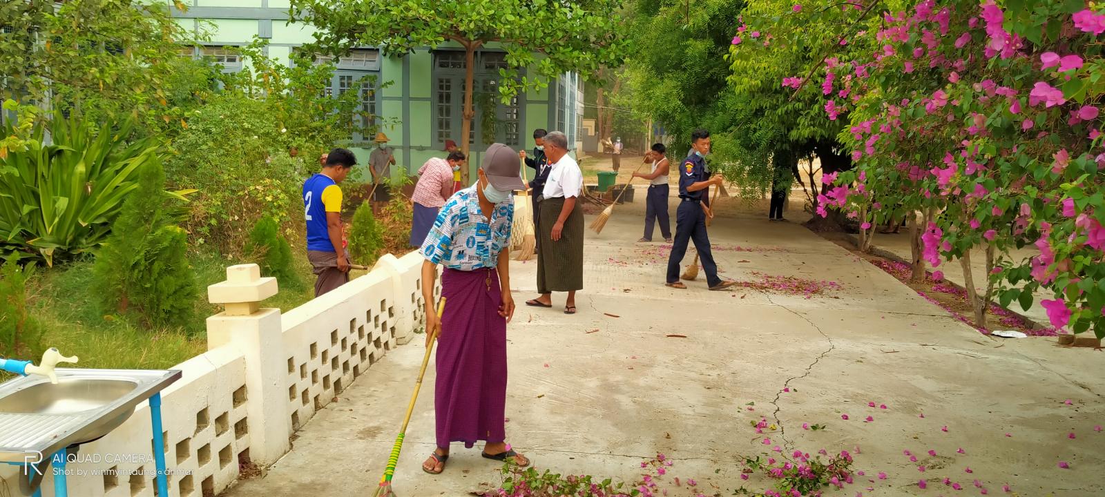 ထိုသို့ဆောင်ရွက်ရာတွင် ကျောင်းဝင်းအပြင်ဘက်ရှိချုံနွယ်၊ ပေါင်းမြက်များ ခုတ်ထွင်ရှင်းလင်းခြင်း၊ အမှိုက်များရှင်းလင်းခြင်း၊ ရေစီးရေလာကောင်းမွန် စေရေးရေနှုတ်မြောင်းများ ရှင်းလင်းခြင်း၊ ကိုဗစ် ၁၉ ရောဂါကာကွယ်ရေး အတွက်ထားရှိသော လက်ဆေးဘေစင်များပြန်လည်ပြုပြင်ခြင်း၊ စာသင်ဆောင် အတွင်းအပြင်သန့်ရှင်းရေးများဆောင်ရွက်ခဲ့ကြောင်းသိရသည်။