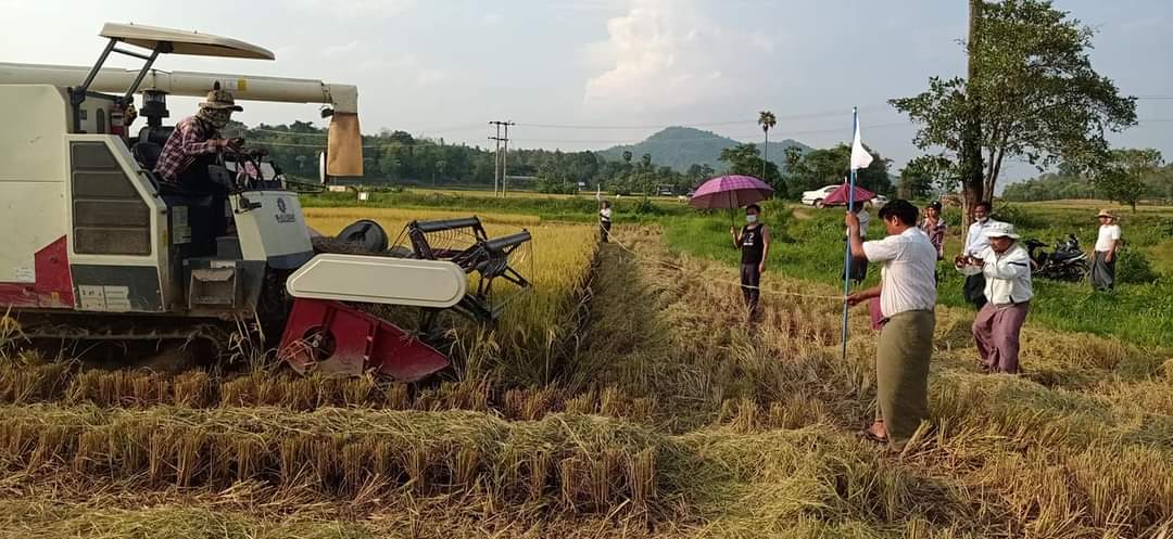 စံကွက်ရိတ်သိမ်းရာတွင် စိုက်ပျိုးရေးဦးစီးဌာနမှ မြို့နယ်ဦးစီးမှူး ဦးတင့်ဆွေက နွေစပါးသီးနှံကိုယ်စား ပြုစံ အထွက်နှုန်းအား သိရှိနိုင်ရန်၊ သီးနှံစိုက် စနစ်အလိုက် အထွက်နှုန်းအား သိရှိနိုင်ရန်နှင့် နွေစပါးသီးနှံ အထွက်တိုးရေး အထွက်နှုန်းမိတ်ဖက်များ၏အရေးပါးမှုကို တောင်သူများ သိရှိနားလည် စေရန်ရည်ရွယ်၍ ယခုလို စံကွက်ရိတ်သိမ်းပွဲကို ပြုလုပ်ရခြင်းခြင်း ဖြစ်ကြောင်းပြောကြားခဲ့ပြီး နွေစပါး(မှော်ဘီ-၂) (၀.၁၀)ဧက စံကွက်ကို စက်ဖြင့်ရိတ်သိမ်းခဲ့ရာ တစ်ဧက အစိုထွက်နှုန်း ၁၂၆တင်း ထွက်ရှိခဲ့သည်။