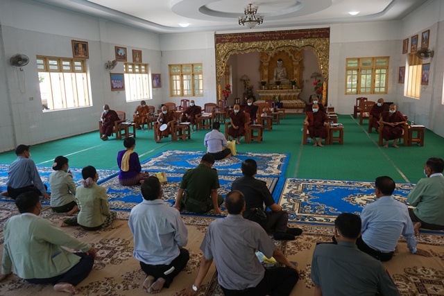 မန္တလေးတိုင်းဒေသကြီး စီမံအုပ်ချုပ်ရေးကောင်စီဥက္ကဋ္ဌ ဦးမောင်ကို နှင့် အဖွဲ့၀င်များသည် ယမန်နေ့ မွန်းလွဲ(၁)နာရီက ကျောက်ဆည်မြို့၊ ဖောင်ရွာ ရပ်ကွက်၊ နေလသုခဓမ္မာရုံတွင် မြို့နယ် သံဃာ့နာယကအဖွဲ့ ဥက္ကဋ္ဌ ဆရာတော်နှင့် ဆရာတော်၊ သံဃာတော်ကြီးများအား ဖူးမျှော်ကြည်ညို ပြီး သာသနာရေးဆိုင်ရာများကို လျှောက်ထားရာ မြို့နယ်သြဝါဒါစရိယဥက္ကဋ္ဌ ဘဒ္ဒန္တစန္ဒိမာ ငွေတွင်း တူးရဆရာတော်မှ သြဝါဒစကားမြွက်ကြားပြီး တိုင်းဒေသကြီးစီမံအုပ်ချုပ်ရေးကောင်စီဥက္ကဋ္ဌနှင့် အဖွဲ့၀င်များက ဆရာတော်ကြီးများထံသို့ ၀တ္တုငွေနှင့်လူဖွယ်ပစ္စည်းများ ဆပ်ကပ်လှူဒါန်းခဲ့သည်။