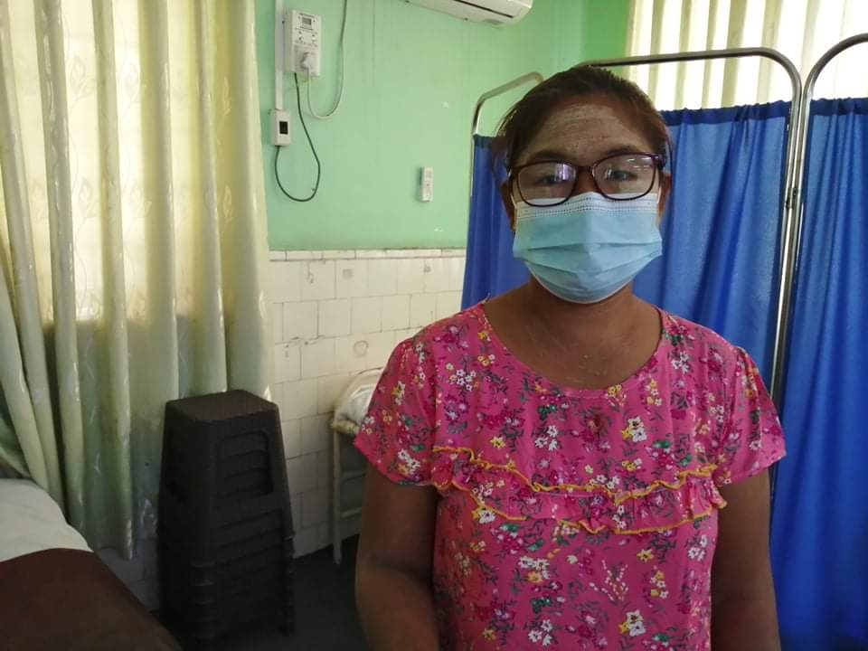 ရန်ကုန်တိုင်းဒေသကြီး သာကေတမြို့နယ်ကလာတာပါ။ လူနာကရိုးရိုး မမွေးနိုင်လို့ ခွဲမွေးဖို့ ဒီဆေးရုံကြီး ကို လာခဲ့တာပါ။ ဆေးရုံမှာ ကုန်ကျစရိတ် အခမဲ့ဆိုတော့ ဘာအခက်အခဲမှမရှိပါဘူး။ မနေ့ကဘဲ အောင်မြင်စွာခွဲမွေးပြီးတာပါ။ ဒီလိုအခြေအနေမျိုးမှာ ဆေးရုံတွေပြန်ဖွင့်ပေးတာ အရမ်းဝမ်းသာပါတယ်။