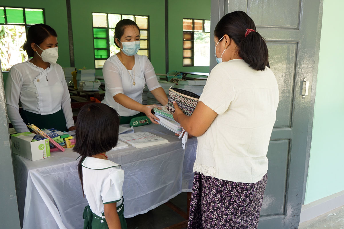ကျောင်းအပ်နှံရာတွင် (၅)နှစ်အရွယ်ကလေးများကို သူငယ်တန်း၊(၆)နှစ်အရွယ်ကလေးများကို ပထမတန်း အပ်နှံရမှာဖြစ်ပြီး ပထမတန်း၊ ဒုတိယတန်း၊တတိယတန်း၊ စတုတ္ထတန်း၊ ဆဋ္ဌမတန်း၊ သတ္တမတန်း၊ ဒသမတန်းတို့ကို သင်ရိုးသစ်နှင့် သတ္တမတန်း၊ အဋ္ဌမတန်း၊ ဒသမတန်းတို့ကို သင်ရိုးဟောင်းအဖြစ် သင်ကြားပို့ချသွားမည်ဖြစ်ကြောင်း၊ ကျောင်းအပ်နှံရာတွင်လည်း အခကြေးငွေ တစ်စုံတစ်ရာ ကောက်ခံမှုမရှိကြောင်းနှင့် ကျောင်းသုံးပြဋ္ဌာန်းစာအုပ်၊ ဗလာစာအုပ်၊ ဘောပင်၊ခဲတံ၊ ပါးစပ် နှာခေါင်းစည်း (Mask) နှင့် Face Shield တို့ကိုလည်း အခမဲ့ထောက်ပံ့ပေးသွားမည် ဖြစ်ကြောင်း၊ ကျောင်းသား၊ကျောင်းသူများ ပညာသင်ကြားနိုင်ရေးအတွက် ဆရာ၊ဆရာမများနှင့်အတူ မိဘပြည်သူများကလည်း ပူးပေါင်းပါဝင် ဆောင်ရွက်ကြစေ လိုကြောင်း” မြို့နယ်ပညာရေးမှူးရုံးမှ တာဝန်ရှိသူတစ်ဦးထံမှ သိရသည်။