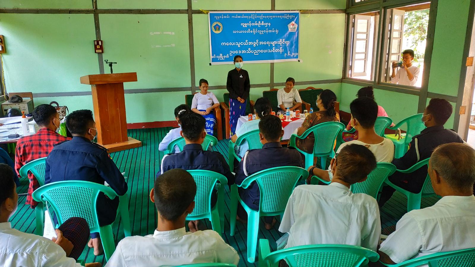 ထို့နောက် မြို့နယ်ကလေးသူငယ်အခွင့်အရေးများဆိုင်ရာ ကော်မတီအဖွဲ့ဝင် မြို့နယ်ဥပဒေအရာရှိ ဒေါ်အိအိမြင့်အောင်က ၂၀၁၉ ခုနှစ် ကလေးသူငယ် အခွင့်အရေးများဆိုင်ရာ ဥပဒေ၊ ရည်ရွယ်ချက် (အခန်း၂ ပုဒ်မ ၄)၊ အခန်း(၇) ကလေးသူငယ်၏ အခွင့်အရေးများ ပုဒ်မ ၁၈ မှ ၂၄ နှင့် စသည့် အခန်းကဏ္ဍ များကို နေ့လည် ၁ နာရီမှ ၃ နာရီချိန်ထိဆွေးနွေးပို့ချသင်ကြားပေးခဲ့သည်။