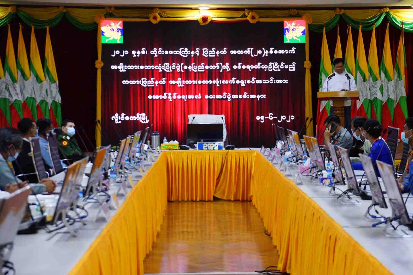 နေပြည်တော်တွင် ကျင်းပပြုလုပ်မည့် ၂၀၂၁ ခုနှစ်၊ တိုင်းဒေသကြီးနှင့်ပြည်နယ် အမျိုးသား ဘောလုံးပြိုင်ပွဲ တွင် ဝင်ရောက်ယှဉ်ပြိုင်မည့် ကယားပြည်နယ် လက်ရွေးစင် အမျိုးသားဘောလုံး အသင်းအား အောင်နိုင် ရေးအလံ ပေးအပ်ပွဲအခမ်းအနားကို ယနေ့ နံနက် ၉ နာရီခွဲက ကယားပြည်နယ်စီမံအုပ်ချုပ်ရေးကော်စီရုံး အစည်းအဝေးခန်းမ၌ ကျင်းပပြုလုပ်သည်။