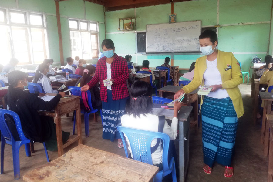 မြို့နယ်ပြန်ကြားရေးနှင့်ပြည်သူ့ဆက်ဆံရေးဦးစီးဌာနမှ မြို့နယ်ဦးစီးမှူး ဒေါ်ဥမ္မာအောင် နှင့်ဝန်ထမ်းများက အထက(နမ့်စန်) ကျောင်းနှင့် အထက (မြို့မ)ကျောင်းရှိ ဆရာဆရာမများနှင့် ကျောင်းသားကျောင်းသူများအတွက် သတင်းစကားလက်ကမ်းစာစောင် စုစုပေါင်း အစောင်(၂၇၀)ကို အခမဲ့လိုက်လံဖြန့်ဝေပေးခဲ့ကြောင်းသိရသည်။