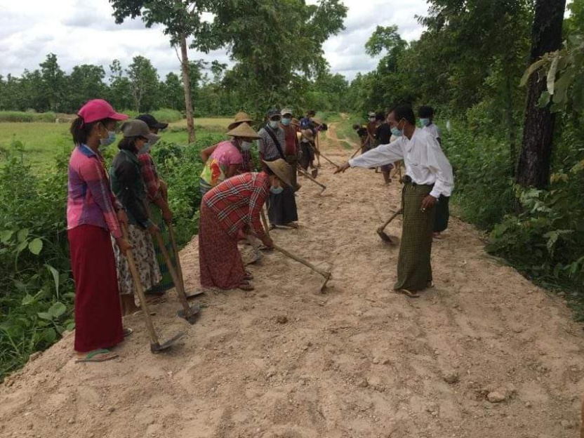 အဆိုပါကျေးရွာတွင်းလမ်းသည် အရှည်(၄၃၃၀)ပေ၊ အကျယ်(၁၂)ပေ၊ ထု(၈)လက်မဖြစ်ပြီး ကိုဗစ်-၁၉ ကာလ စီးပွားရေးကုစားမှုအစီအစဉ်အရ ကျေးလက်နေမိသားစုဝင်များ ဝင်ငွေ လျော့နည်းလာမှုများနှင့် စားဝတ်နေရေးအခက်အခဲများ ကုစားပေးရန်၊ ကျေးရွာ၏ကုန်ထုတ် လုပ်ငန်းနှင့် အခြေခံ အဆောက် အဦဆိုင်ရာ ဖွံ့ဖြိုးရေးလုပ်ငန်းများကို ကိုယ်တိုင်ဆောင်ရွက်စေပြီး လုပ်အားခ ငွေပေးချေခြင်းဖြင့် ကျေးလက်နေပြည်သူများ ချက်ချင်းဝင်ငွေရရှိစေရန် ရည်ရွယ်၍ မြို့နယ်ကျေး လက်ဒေသ ဖွံ့ဖြိုး တိုးတက်ရေးဦးစီးဌာနက Cash for Work စီမံကိန်း တစ်ရွာလျှင် ထောက်ပံ့ငွေ ကျပ်သိန်း(၁၀၀)စီဖြင့် ကျေးရွာပေါင်း(၆)ရွာတွင် အကောင်အထည်ဖော် ဆောင်ရွက်လျှက်ရှိကြောင်း မြို့နယ်ကျေးလက် ဒေသဖွံ့ ဖြိုးတိုးတက်ရေးဦးစီးဌာနမှ သိရသည်။