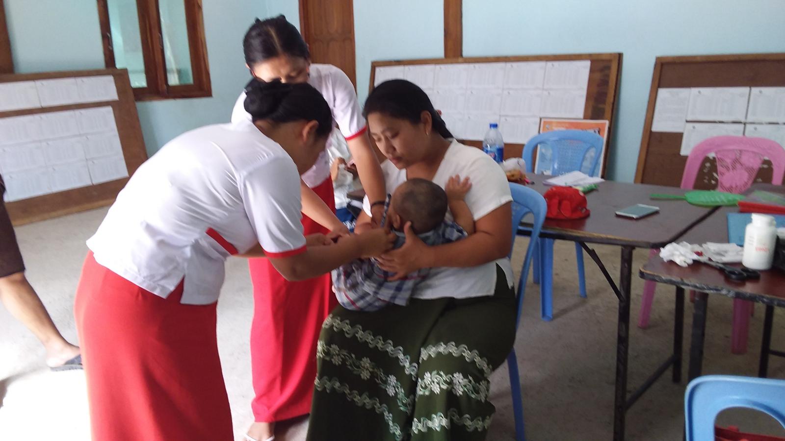 ထိုသို့ဆောင်ရွက်ရာတွင် အမျိုးသမီးကျန်းမာရေးဆရာမ ဒေါ်မာရီနာ ဦးဆောင်၍ သားဖွားဆရာမ ဒေါ်နန်းထွေးခမ်းနှင့် ဒေါ်နီနီအောင်ထွေးတို့က ကလေးငယ်များ ကြက်မျက်သင့် ရောဂါမဖြစ်ပွားစေရန်၊ ဉာဏ်ရည်ဉာဏ်သွေး ကောင်းမွန်စေရန်၊ အမြင်အာရုံကောင်းစေပြီး မျက်ကြည်လွှာကို အားပေး စေရန်နှင့် ကူးစက်ရောဂါ မဖြစ်ပွားစေရေး ကိုယ်ခန္ဓာစွမ်းအားကို မြှင့်တင်ပေးနိုင်ရန် အတွက် အသက် ၆ လ မှ ၅ နှစ်အောက် ကလေးငယ်များအား ဗိုက်တာမင်အေနှင့် သံချဆေးများ တိုက်ကျွေးခြင်း၊ လက်မောင်းပတ် တိုင်းပေးခြင်းတို့ ဆောင်ရွက်ခဲ့ပြီး ယင်းအစီအစဉ်ကို (၆)လတစ်ကြိမ် ဆောင်ရွက်လျက်ရှိကြောင်း သိရ သည်။