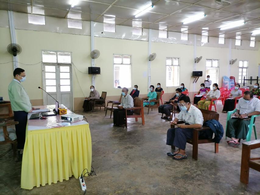 အဆိုပါအစည်းအဝေးတွင် မြို့နယ်စီမံအုပ်ချုပ်ရေးအဖွဲ့ဥက္ကဋ္ဌ ၊မြို့နယ်အုပ်ချုပ်ရေးမှူး၊ ဦးမိုးဆန်းထွန်းက ယခု ကိုဗစ်-၁၉ ရောဂါ ကူးစက်မှုနှုန်း မြင့်မားနေသည့် ကာလဖြစ်သည့် အတွက် တစ်ဖက်ကလည်း ကာကွယ်ဆေး ထိုးနှံသည့် လုပ်ငန်းကို ဦးစားပေး အနေနဲ့ ဆောင်ရွက်ရမည်ဖြစ်ပါကြောင်း၊ ထို့ကြောင့် ကာကွယ်ဆေး ထိုးသင့်သူများ ကာကွယ်ဆေး ထိုးခွင့်ရရှိစေရေး အတွက် စာရင်းကောက် ယူရေးလုပ်ငန်းသည်လည်း အရေးကြီးသည့် အတွက် အားလုံး ပူးပေါင်းဆောင်ရွက်စေလိုပါကြောင်း၊ အသက်(၆၅)နှစ်အထက်ကို ပထမဦး စားပေးစာရင်း ကောက်ယူသွားမည်ဖြစ် ပြီး၊အစိုးရပုဂ္ဂလိကကျန်းမာရေး ဝန်ထမ်းများ၊ Volunteerများ၊ဘိုးဘွားရိပ်သာများ၊ဘုန်းကြီးကျောင်းနှင့် သီလရှင်ကျောင်းများ၊ နိုင်ငံ့ ဝန်ထမ်းများ၊ ပုဂ္ဂလိက ဘဏ်ဝန်ထမ်းများ၊စက်ရုံ၊အလုပ်ရုံ အလုပ်သမားများ၊ ၊တည်းခိုခန်း များ၊အကျဉ်းသား အချုပ်သားများ၊ပို့ဆောင်ရေးလုပ်သားများ၊ဈေးရောင်းသူများ ၊ပြည်သူလူ ထုများ ကို ထိုးနှံပေးသွားမည်ဖြစ်ကြောင်းပြောကြားသည်။