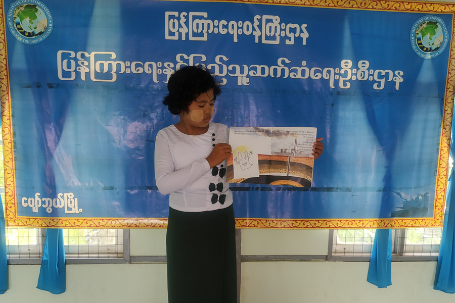 "ကျွန်မတို့အနေနဲ့ ကိုဗစ်-၁၉ ကာလအတွင်းမှာ စာကြည့်တိုက်ကိုမလာနိုင်တဲ့ကလေးသူငယ်တွေ အိမ်မှာနေရင်းကြည့်ရှုနားထောင်လို့ရအောင် ရည်ရွယ်ပြီးတော့ ပုံပြင်ဖတ်ခြင်းအစီအစဉ်ကို အပတ်စဉ်ပြု လုပ်ပြီး ပျော်ဘွယ်မြို့နယ် ပြည်သူ့စာကြည့်တိုက်လို့အမည်ပေးထားတဲ့ လူမှုကွန်ယက်မှတစ်ဆင့် လွှင့်တင်ပေးနေတာဖြစ်ပါတယ်"ဟု မြို့နယ်ရုံးရှိ စာကြည့်တိုက်မှူး ဒေါ်မေစောမွန်က ရှင်းပြသည်။