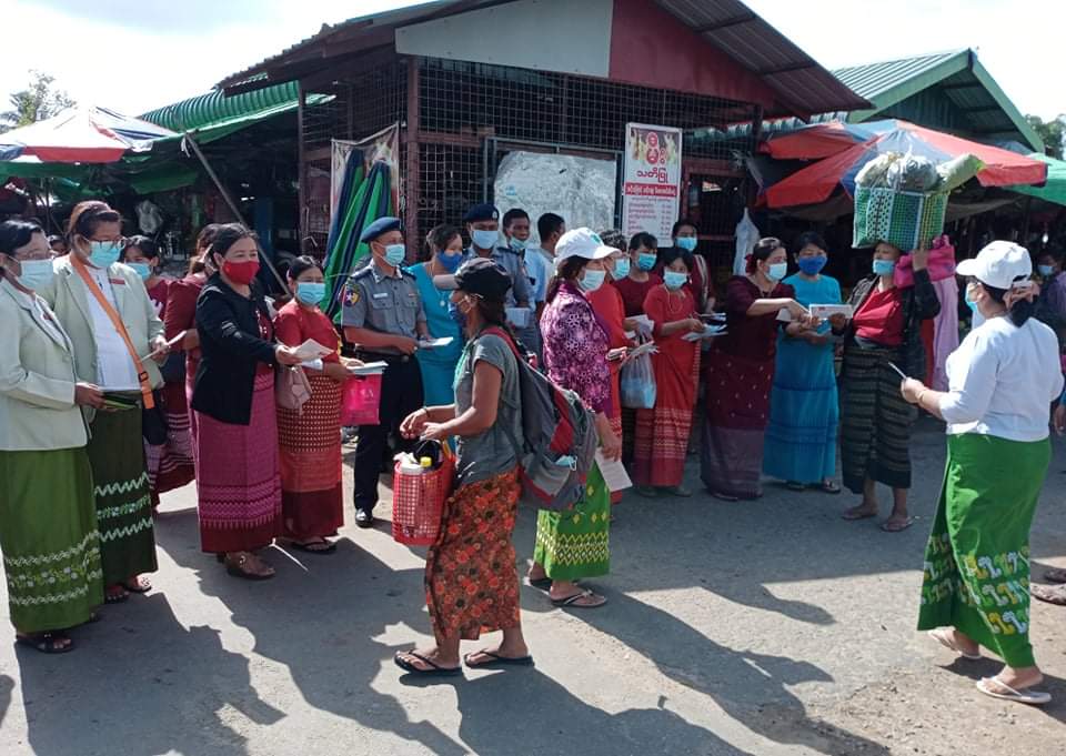 ထိုသို့ဖြန့်ဝေပေးရာတွင် မြို့မဈေးသို့ လာရောက်ကြသူများနှင့် လမ်းသွားလမ်းလာပြည်သူများကို ကိုဗစ်-၁၉ ရောဂါကာကွယ် ထိန်းချုပ်နိုင်ရေးအတွက် အပြင်ထွက်သည့်အခါတိုင်း နှာခေါင်းစည်းများ တပ်ဆင်သွားလာကြရန် အသိပေးပြောကြားပြီး၊ Mask မတပ်ဆင်ထားသူများအား ပါးစပ်နှာခေါင်းစည်း (Mask) များ တပ်ဆင်ပေးခဲ့ကြောင်း သိရသည်။