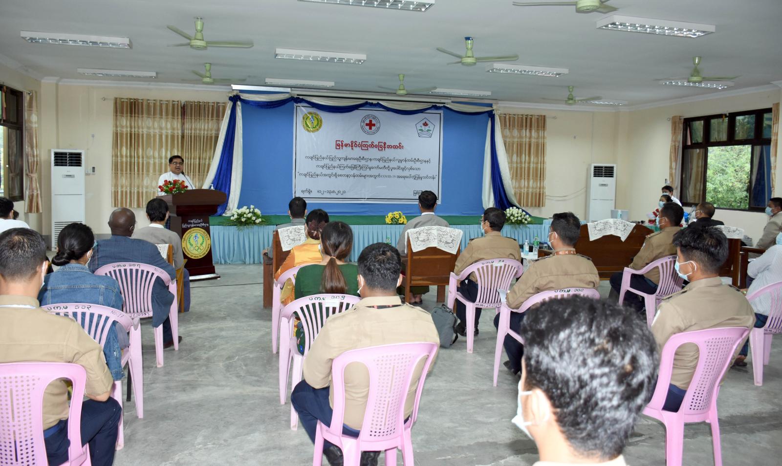ထို့နောက် အပြည်ပြည်ဆိုင်ရာကြက်ခြေနီကော်မတီ ICRC မှ မြစ်ကြီးနားရုံး တာဝန်ခံကိုယ် စားလှယ်က ကိုဗစ်-၁၉ ကာကွယ်ထိန်းချုပ်ရေးလုပ်ငန်းများတွင် ပါဝင်ကူညီဆောင်ရွက်နေမှုများ နှင့် ပတ်သက်၍ ရှင်းလင်းပြောကြားခဲ့ပြီး သင်တန်းတက်ရောက်ကြမည့် ကြက်ခြေနီ တပ်ဖွဲ့ဝင်များ၊ ဘာသာရေးအဖွဲ့အစည်းများ၊ ပရဟိတအဖွဲ့အစည်းများနှင့် တိုင်းရင်းသား စာပေနှင့်ယဉ်ကျေးမှု အဖွဲ့အသီးသီးတို့မှ စေတနာ့ဝန်ထမ်းများက တစ်ဦးချင်း မိတ်ဆက်ခဲ့ကြသည်။