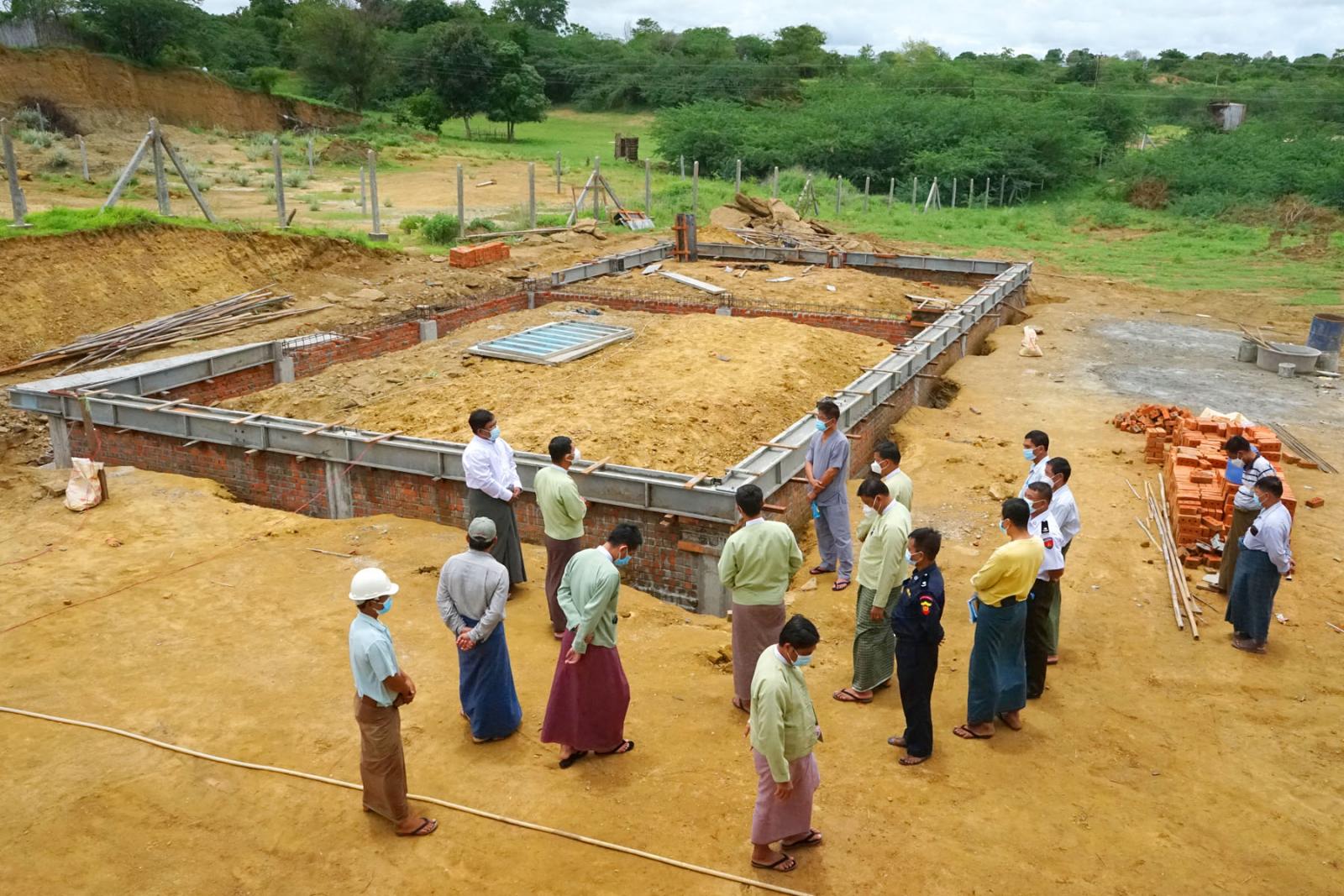 အဆိုပါ ၃၀ လီတာကျု အောက်ဆီဂျင်စက်ရုံ ဆောက်လုပ်နေမှုများကို မင်းဘူးခရိုင် ကိုဗစ်-၁၉ ရောဂါ ကြိုတင်ကာကွယ်ရေးနှင့် အရေးပေါ် တုန့်ပြန်ရေးကော်မတီဥက္ကဋ္ဌ ဦးထွန်းထွန်းဝင်းနှင့် အဖွဲ့ဝင်များက ယမန်နေ့ မွန်းလွဲပိုင်းတွင် သွားရောက်ကွင်းဆင်း ကြည့်ရှုစစ်ဆေးရာ ဗြဟ္မစိုရ် လူမှုကူရေးအသင်း အတွင်းရေးမှူး ဦးကိုကိုအောင်မှ အဆောက်ဦး တည်ဆောက်နေမှုများ၊ လျှပ်စစ်မီးရရှိရေး ဆောင်ရွက်နေမှုများနှင့် ပတ်သက်၍ ရှင်းလင်းတင်ပြသည်။