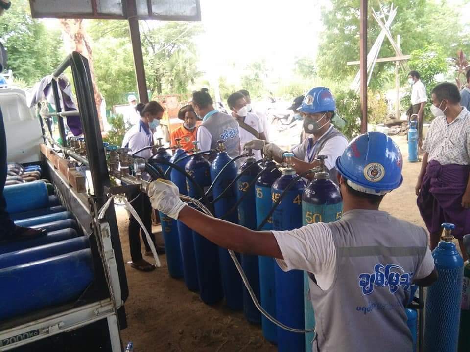 အောက်စီဂျင်းများ အခမဲ့ဖြန့်ဝေပေးရာတွင် ယမန်နေ့ ကတည်က မေတ္တာရှင် လူမှုကူညီရေး အသင်းမှ၊ အောက်စီဂျင် အမှန်တကယ်လို အပ်နေသူများကို အိုခွံများ ယူဆောင်လာစေရန် အသိပေး အကြောင်းကြားထားရာ ယနေ့တွင် အောက်စီးဂျင်ကို လက်ဝယ်အရောက် အခမဲ့ ဖြန့်ဝေး ပေးခြင်းဖြစ်သည်။
