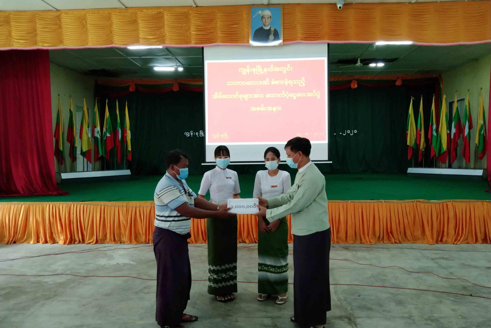 ထို့နောက် လွှတ်တော်ကိုယ်စားလှယ်များနှင့် တာဝန်ရှိသူများက သဘာဝဘေးကြောင့် ပျက်စီးဆုံးရှုံးခဲ့သည့် ကပကျေးရွာအုပ်စုတွင် နေအိမ် (၄) လုံး၊ ရေမြစ်ကြီးကျေးရွာအုပ်စုတွင် နေအိမ် (၁၄) လုံးမှ အိမ်ထောင်စု (၁၈) စုတို့အား နေအိမ်ပြန်လည် ဆောက်နိုင်ရေး အတွက် (၁) အိမ်လျှင် (၁၀) သိန်းကျပ် ထောက်ပံ့ပေးအပ်ခဲ့ရာ သဘာဝဘေးဒဏ်ခံစားရသည့် မိသားစုဝင်တစ်ဦးက ကျေးဇူးတင် စကားပြန်လည်ပြောကြားခဲ့ပြီး တိုင်းဒေသကြီးလွှတ်တော် ကိုယ်စားလှယ်၊ ဒေါက်တာ ထူးနေအောင်က နိဂုံးချုပ်အမှာစကား ပြော ကြားခဲ့ကြောင်း သိရသည်။