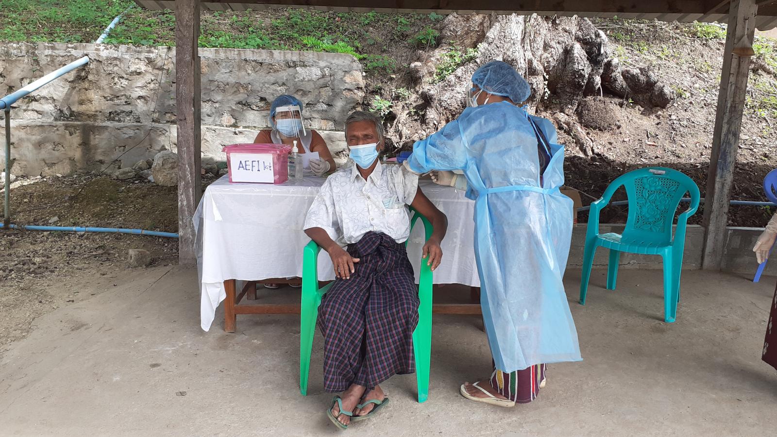အဆိုပါကာကွယ်ဆေးထိုးနှံပေးရာသို့ မြို့နယ်ကိုဗစ်-၁၉ ရောဂါ ကြိုတင်ကာကွယ်ရေးနှင့် အရေးပေါ်တုံ့ပြန်ရေးကော်မတီဥက္ကဋ္ဌ မြို့နယ်အုပ်ချုပ်ရေးမှူးဦးငြိမ်းချမ်းအောင်နှင့် ကော်မတီ ဝင်များက ကြည့်ရှုအားပေးခဲ့ကြကြောင်းနှင့်ယနေ့နံနက်ပိုင်းတွင် အသက်(၆၅)နှစ်နှင့်အထက် သက်ကြီးရွယ်အို (၃၈)ဦး တို့အားကာကွယ်ဆေးထိုးနှံပေးခဲ့ကြောင်း သိရသည်။