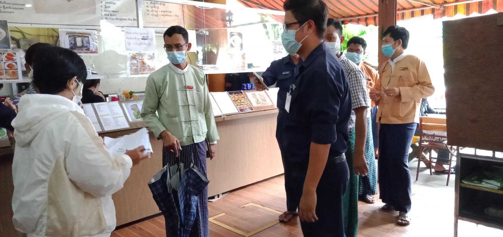 ထိုသို့စစ်ဆေးရာတွင် စားသောက်ဆိုင်များနှင့် စားဖွယ်စုံဆိုင်များ၌ ပြင်ဆင်ထားရှိရန် အချက်များ၊ စားသုံးသူများ လိုက်နာဆောင်ရွက်ရ မည့်အချက်များ အထူးဂရုပြုဆောင်ရွက်ရမည့် သန့်ရှင်းရေးလုပ်ငန်းများ စသည့် ကိုဗစ်-၁၉ ရောဂါ ကြိုတင်ကာကွယ်နိုင်ရန် ကျန်းမာရေး နှင့်အားကစားဝန်ကြီးဌာနမှ ထုတ်ပြန်ထားသော လမ်းညွှန်ချက်များနှင့်အညီ စီစဉ်ဆောင်ရွက်ထားရှိမှု အခြေအနေများကို ကွင်းဆင်း စစ်ဆေးခဲ့ကြောင်း သိရသည်။