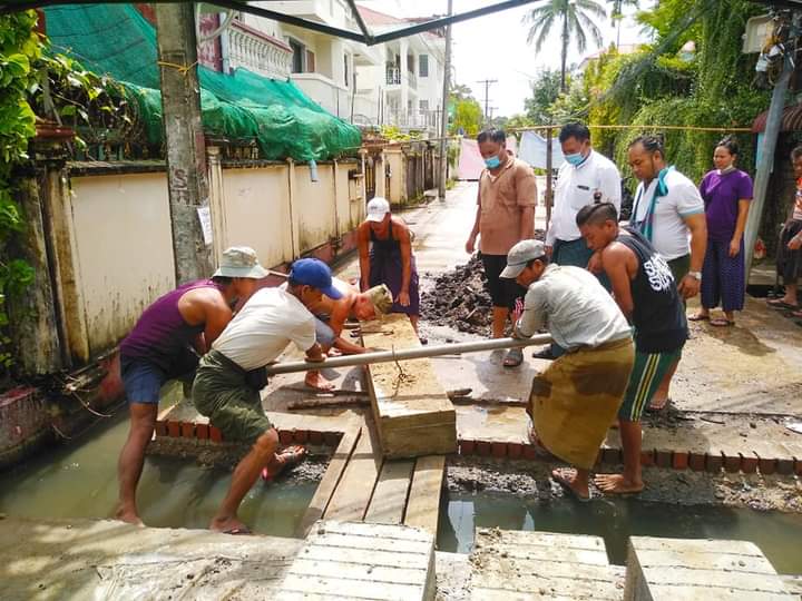 ရန်ကုန်တိုင်းဒေသကြီး၊မြောက်ပိုင်းခရိုင်၊အင်းစိန်မြို့နယ်၌ မိုးရာသီကာလအတွင်း ရေကြီးရေလျှံမှုများ မဖြစ်ပေါ်စေရန်၊ ရေမြောင်း အတွင်း အမှိုက်များ ပိတ်ဆို့မှု မရှိစေရန်နှင့် ခြင်များ ပေါက် ဖွားမှု မရှိစေရန် ရည်ရွယ်၍ မိုးရာသီကာလအတွင်း ရေကြီးရေလျှံမှုများ မဖြစ်စေရန် ရေစီးရေလာကောင်းမွန်အောင် ဆောင်ရွက်ခြင်းကို ယမန်နေ့ နေ့လယ်(၁)နာရီအချိန်က ဆောင်ရွက်ခဲ့သည်။