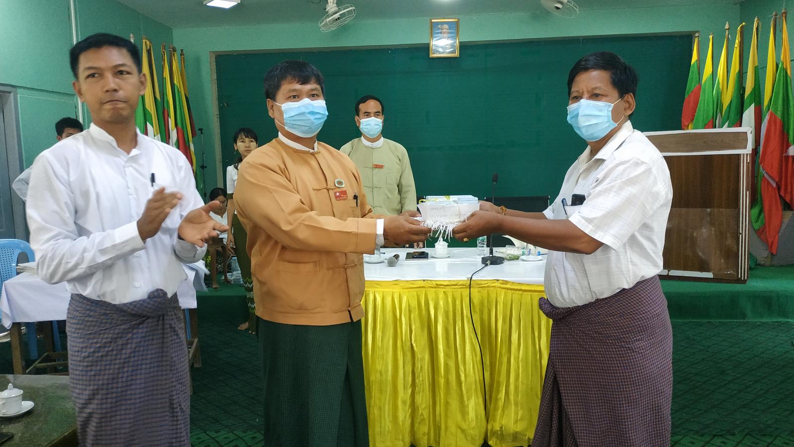ထောက်ပံ့ငွေများ ပေးအပ်ရာတွင် ပြည်သု့လွှတ်တော်ကိုယ်စား ဒေါက်တာမင်းသိန်း၊ မြို့နယ်စီမံခန့် ခွဲမှုကော်မတီ ဥက္ကဋ္ဌ ဦးခင်မောင်မြင့်၊ မြို့နယ်ရဲတပ်ဖွဲ့မှူး ရဲမှုးညွန့်၀င်း၊ လူ၀င်မှုကြီးကြပ် ရေးနှင့်ပြည်သူ့ အင်အားဆိုင်ရာ ဦးစီးဌာနမှူး ဦးမျိုးမြင့်ဦး၊ ဒုမြို့နယ်အုပ်ချုပ်ရေးမှူး ဦးကျော်မင်းခိုင်တို့က ရပ်ကွက်ကျေး ရွာအုပ်စု (၆၇) အုပ်စုရှိ အိမ်ထောင်စုတစ်စုလျှင် ငွေကျပ်နှစ်သေင်း နှုန်းဖြင့် အိမ်ထောင်စုပေါင်း ၁၁၉၀၆ အတွက် စုစုပေါင်း ထောက်ပံ့ ငွေကျပ် ၂ ၃၈၁ သိန်း ၂၀၀၀၀ ကျပ် ကိုရပ်/ကျေးအုပ်စု အုပ်ချုပ်ရေးမှူးနှင့် ရပ်/ကျေး စာရေးများထံ ထုတ်ပေးခဲ့ သည်။