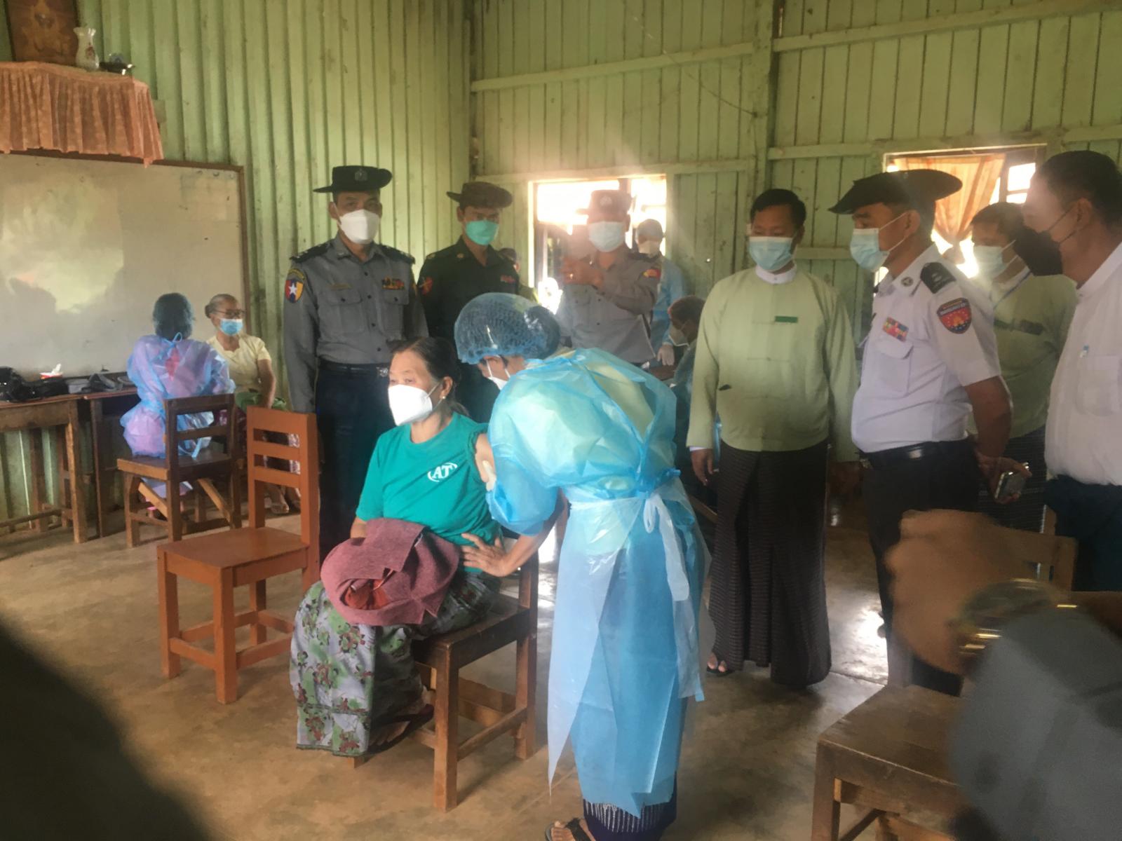 ကိုဗစ်-၁၉ ရောဂါကာကွယ်ဆေးထိုးနှံခြင်းကို ဇူလိုင်(၃၀)ရက်နေ့တွင်စတင်၍ မြို့နယ်အတွင်း ဆေးထိုးအဖွဲ့များဖြင့် သက်ဆိုင်ရာ ဆေးထိုးစုရပ်နေရာများတွင် ရပ်ကွက်/ ကျေးရွာအုပ်စု အလိုက် ကာကွယ်ဆေးထိုးနှံခြင်းလုပ်ငန်းများကို ပထမအကြိမ်အဖြစ် ထိုးနှံပေးခဲ့ပြီး ဖြစ်ကြောင်း သိရသည်။