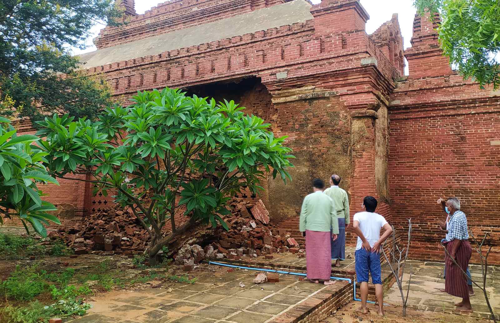 ပုဂံယဉ်ကျေးမှုအမွေအနှစ်ဒေသအတွင်း ယနေ့၊ နံနက် (၂)နာရီ အချိန်မှ နံနက် (၅)နာရီ အချိန်ခန့်ထိ မိုးသည်းထန်စွာရွာသွန်းခဲ့သဖြင့် ဘုရားအမှတ်(၈၀၁)သံပျင်စွာ ဘုရား၏ တောင်ဘက်ခြမ်းတိုက်မနံရံမှ အလျား ၁၇ ပေ၊ အနံ ၁၄ ပေ၊ ထု ၃ ပေခန့်အုတ်များ ထွက်၍ ပြိုကျပျက်စီးခဲ့ကြောင်း ရှေးဟောင်းသုတေသနနှင့် အမျိုးသားပြတိုက်ဦးစီးဌာနမှ ညွှန်ကြားရေးမှူး ဒေါက်တာသန်းထိုက်က ပြောကြားသည်။ အဆိုပါ ဘုရားအမှတ်(၈၀၁) သံပျင်စွာဘုရားသည် ယဉ်ကျေးမှုအမွေအနှစ်များ တည်ရှိရာဒေသတွင် တည်ရှိပြီး အရွယ်အစား (အလျား ၁၀၀ ပေ၊ အနံ ၆၀ ပေ၊ အမြင့် ၄၅ ပေ)ခန့်ရှိသည့် လိုဏ်ဘုရားတစ်ဆူဖြစ်ပြီး နံရံဆေးရေးပန်းချီများမရှိပဲ ၂၀၀၄ ခုနှစ်တွင် မူလကျန်ရှိသည့် ရှေးဟောင်းအဆောက် အဦကိုငုံ၍ အင်္ဂါစုံပြုပြင်ထားသည့် ဘုရားတစ်ဆူဖြစ်ကြောင်းသိရပြီး၊ ကိုရီးယားနိုင်ငံ YOE LAY BUDDHIST, SECT SUK IN WANG ကပြန်လည်ပြုပြင် လှူဒါန်းထားသည့်ဘုရား ဖြစ်ကာ (၂၄.၈.၂၀၁၆) ရက်နေ့က လှုပ်ခတ်ခဲ့သော ငလျင်ဒဏ်ကြောင့် ထိခိုက်ပျက်စီးခဲ့သည့် ကွမ်းတောင်ပိုင်းကို အလေးဝန်လျှော့ချ ထိန်းသိမ်းထားရာမှ တိုက်မအတွင်းနံရံမှ မူလအုတ်များသည် နှစ်ကာလကြာမြင့်ပြီဖြစ်၍ အုတ်များတွဲဆက်ခိုင်မာမှုအားနည်းခြင်း ကြောင့်လည်းကောင်း၊ ယနေ့ နံနက်ပိုင်းက မိုးသည်းထန်စွာရွာသွန်းပြီး မိုးရေများစိမ့်ဝင်ခြင်းကြောင့် အုတ်များပြိုကျခဲ့ခြင်းဖြစ်ကြောင်း သိရသည်။