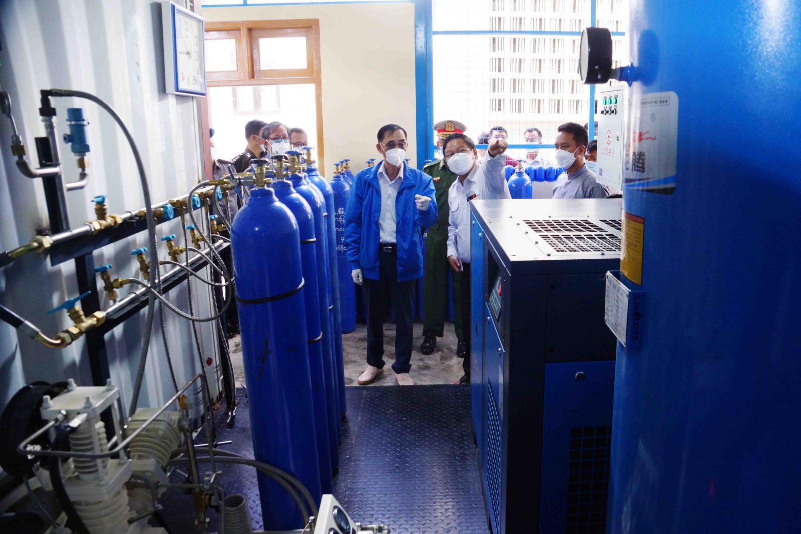 ထိုသို့စစ်ဆေးရာတွင် ကယားပြည်နယ်အစိုးရအဖွဲ့ ပြည်နယ်၀န်ကြီးချုပ် ဦးခင်မောင်ဦး၊ ဒေသကွပ်ကဲမှု စစ်ဌာနချုပ် (လွိုင်ကော်) ဒေသကွပ်ကဲရေးမှူး ဗိုလ်မှူးချုပ် ထွန်းနိုင်ဦး၊ ပြည်နယ်အစိုးရ အဖွဲ့၀င်၀န်ကြီးများ ၊ ပြည်နယ်အစိုးရ အဖွဲ့ အတွင်းရေးမှူးနှင့် တာ၀န်ရှိသူ များက အောက်ဆီဂျင် စက်လည်ပတ်မှု အခြေအနေ ၊ထုတ်လုပ်နိုင်မှု ပမာဏာများနှင့် ပတ်သက်သည့်အခြေအနေများ အား မေးမြန်းခဲ့ရာ ပြည်နယ်စက်မှုကြီးကြပ်မှ တာ၀န်ရှိသူက ရှင်းလင်း တင်ပြခဲ့သည်။ ထို့နောက် ပြည်နယ်၀န်ကြီးချုပ်နှင့် တာ၀န်ရှိတို့က အောက်ဆီဂျင် စက် လည်ပတ်နေမှု ၊ ထုတ််လုပ်နေမှု အခြေအနေ၊ အောက်ဆီဂျင်အိုးထားရှိသည့် နေရာများအား ကြည့်ရှုစစ်ဆေးခဲ့ကြောင်း သိရသည်။