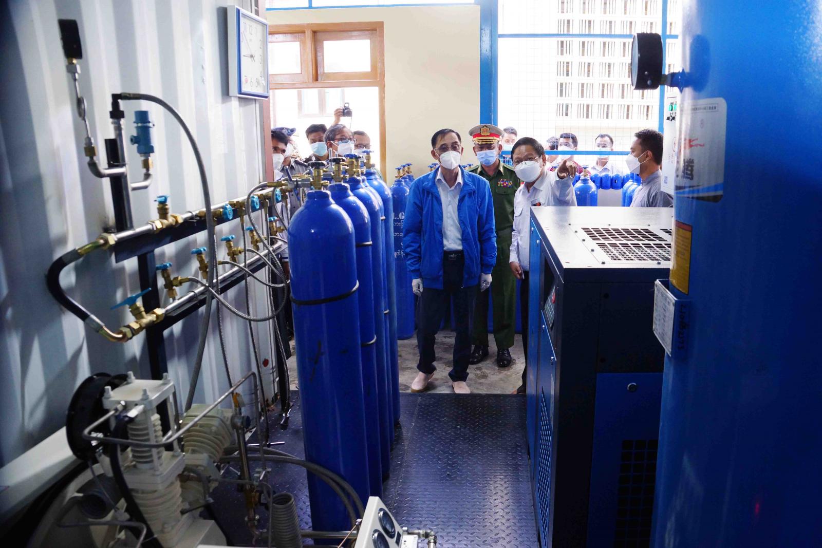 ကယားပြည်နယ်အစိုးရအဖွဲ့ ပြည်နယ် ဝန်ကြီးချုပ်နှင့် တာဝန်ရှိသူများသည် ၂၀၂၀ - ၂၀၂၁ ဘဏ္ဍာရေးနှစ်တွင် ကယားပြည်နယ်အစိုးရအဖွဲ့၏ လှူဒါန်း ထောက်ပံ့ငွေဖြင့် လွိုင်ကော် ပြည်သူ့ ဆေးရုံကြီးတွင် တည်ဆောက်ထားသည့် အောက်ဆီဂျင်စက် 25 m3/h မှ တစ်နေ့လျှင်အောက်ဆီဂျင် လီတာ (၄၀) အိုး ၊ အလုံး (၁၀၀) ထုတ်လုပ်နေမှု အခြေအနေအား ယနေ့ နံနက် ၉ နာရီ အချိန်က သွားရောက်စစ်ဆေးကြည့်ရှုခဲ့သည်။