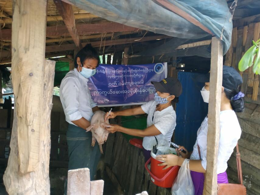 အဆိုပါ ကာကွယ်ဆေးထိုးနှံခြင်းကို မြို့နယ်မွေးမြူရေးနှင့်ကုသရေး ဦးစီးဌာနမှ လက်ထောက် ညွှန်ကြားရေးမှူး ဒေါက်တာအဲလစ်စဘတ်ဝင်းရှိန်နှင့် ဝန်ထမ်းများက ဝက်ဝမ်းကျ ရောဂါ ကာကွယ်ဆေး(၁၄၆)ကောင်နှင့် ကျွဲနွား ခွာနာ လျှာနာ ရောဂါ ကာကွယ်ဆေး (၄၅)ကောင် တို့ကို အခမဲ့ထိုးနှံပေးခဲ့ကြောင်းနှင့် မြို့နယ်အတွင်း အခြားကူးစက်ရောဂါ ကာကွယ် ဆေးများကိုလည်း အလျဉ်းသင့်သလို ဆက်လက်ထိုးနှံပေးသွားမည် ဖြစ်ကြောင်း မြို့နယ်မွေးမြူရေးနှင့် ကုသရေး ဦးစီးဌာနမှ သိရသည်။