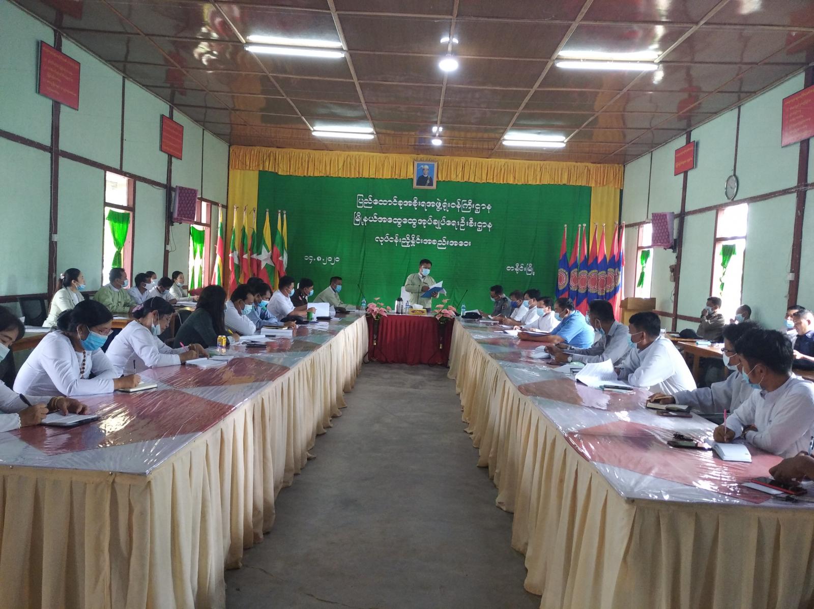 အဆိုပါ လုပ်ငန်းညှိနှိုင်းအစည်းအဝေးတွင် မြို့နယ်အထွေအုပ်ချုပ်ရေးဦးစီးဌာန၊ မြို့နယ်အုပ်ချုပ်ရေးမှူး ဦးကျော်လွင်က နေရပ်စွန့်ခွာပြည်သူများ အိမ်ထောင်စု(၁၆)စုအတွက် မူလနေရပ်သို့ ပြောင်းရွှေ့နိုင်ရေးအတွက် တိမ်းရှောင်ပြည်သူများ၏ မူလမြေနေရာများပေါ်တွင် အခြေခံ၍ ကွင်းမြေပုံ၊ အကွက်ချမြေပုံများကို စနစ်တကျရေးဆွဲရန်၊ အိမ်ထောင်စု(၁၆)စုအတွက် (၉)လစာ စားနပ်ရိက္ခာ ထောက်ပံ့ရေး၊ မိသားစုကျန်းမာရေး၊ ပညာရေး၊ ဘာသာရေး၊ အုပ်ချုပ်ရေး၊ လုံခြုံရေးနှင့် စီမံခန့်ခွဲရေးဆိုင်ရာအဆောက်အဦများ၊ လူနေအိမ်များ၊ လမ်း၊ တံတားများ၊ လျှပ်စစ်မီးရရှိရေး၊ ရေနှင့် ပတ်ဝန်းကျင် သန့်ရှင်းရေးစသည့် အခြေခံလိုအပ်ချက်များကို ဦးစားပေး ဆောင်ရွက်နိုင်ရန်၊ အသက်မွေးဝမ်းကျောင်း လုပ်ငန်းများအတွက် အလုပ်အကိုင် အခွင့်အလမ်းများ ပံ့ပိုးဆောင်ရွက်ပေးရန်၊ စိုက်ပျိုးမြေဖော်ထုတ်ပေးမှုနှင့် သီးနှံစိုက်ပျိုးစရိတ် ထုတ်ပေးခြင်းနှင့် တစ်ပိုင်တစ်နိုင် မွေးမြူရေးဖွံ့ဖြိုးတိုးတက် စေရန်အတွက် ဆောင်ရွက်ပေးရန်၊ နေရပ်စွန့်ခွာသူများ၊ အထူးသဖြင့် အထူးကာကွယ် စောင့်ရှောက်မှုပေးရန်လိုအပ်သော အမျိုးသမီးများ၊ ကလေး သူငယ်များ၊ သက်ကြီးရွယ်အိုများနှင့် မသန်စွမ်းသူများ အနေဖြင့် အရေးပေါ် ဆေးကုသမှုခံယူရန် အတွက် လက်ရှိနေထိုင်ရာဒေသတွင် လက်လှမ်း မမီနိုင်သည့် အထူးကုမှုခံယူရန် လိုအပ်လာပါက အနီးစပ်ဆုံး ဆေးရုံသို့ တတ်နိုင်သမျှဆောလျင်စာ ရောက်ရှိနိုင်စေရန် အတွက် ပံ့ပိုးစီမံဆောင်ရွက်ပေးနိုင်ရန်၊ ပြန်လည်နေရာချထားသည့် ဒေသများတွင် ပညာရေးဆိုင်ရာ ဝန်ဆောင်မှု များပေးရာတွင် မိန်းကလေးများ၊ မသန်စွမ်းသူများနှင့် လူနည်းစုများ အပါအဝင်အားလုံး အကျုံးဝင်သည့် ပညာရေးဖြစ်စေရေးကို ဦးတည်ဆောင်ရွက်ပေးနိုင်ရန်နှင့် စသည့် အခြေခံလိုအပ်ချက်များ ဆောင်ရွက်ပေးနိုင်ရန်တို့အတွက် ပြည်တွင်းနေရပ် စွန့်ခွာသူများ ပြန်လည်နေရာချ ထားရေးနှင့် ယာယီခို လှုံရာစခန်းများ ပိတ်သိမ်းရေးဆိုင်ရာ မြို့နယ်အဆင့် ဆပ်ကော်မတီများ ဖွဲ့စည်းကာ ဌာနဆိုင်ရာများအား အသီးသီး တာဝန်ပေးအပ်ခဲ့ကြောင်း သိရသည်။