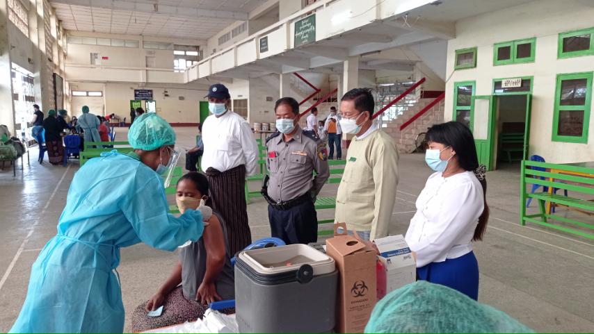 ထို့သို့ ကာကွယ်ဆေးထိုးနှံပေးခြင်းလုပ်ငန်းများ ဆောင်ရွက်ရာတွင် မြို့နယ် ကိုဗစ်-၁၉ ထိန်းချုပ်ရေးနှင့် အရေးပေါ်တုံ့ပြန်ရေး ကော်မတီဥက္ကဋ္ဌ၏ အနီးကပ်ကြီးကြပ်မှုဖြင့် မြို့နယ်ပြည်သူ့ကျန်းမာရေးဦးစီးဌာနမှ ကျန်းမာရေးဝန်ထမ်းများ၊ အထွေထွေ အုပ်ချုပ်ရေးဦးစီးဌာနမှဝန်ထမ်းများ၊ မြို့နယ်လူမှုဖူလုံရေးအဖွဲ့ဝန်ထမ်းများ၊ မြို့နယ်မီးသတ်တပ်ဖွဲ့ဝင်များ၊ ရပ်ကွက်အုပ်ချုပ်ရေး မှူးများဖြင့် ပူးပေါင်း ဆောင်ရွက်လျက်ရှိကြသည်။