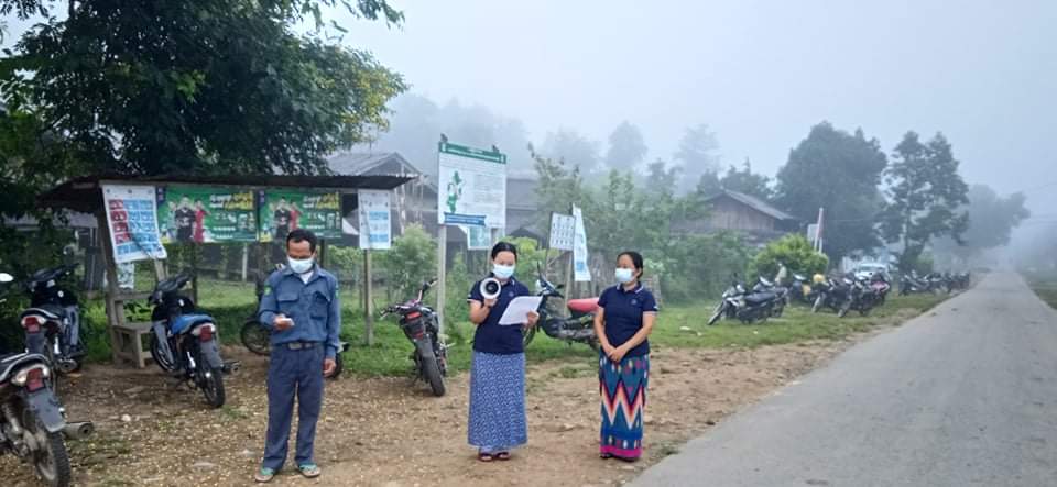 ကချင်ပြည်နယ်၊ ပူတာအိုခရိုင်၊ မချမ်းဘော့မြို့နယ်၌ ကိုဗစ်-၁၉ ရောဂါကာကွယ်ရေး၊ ရောဂါကူးစက်ပြန့်ပွားမှု မရှိစေရေးနှင့် ကာကွယ်ထိန်းချုပ်ရေး လုပ်ငန်းများကို ပြည်သူများ ကျယ်ကျယ်ပြန့်ပြန့် သိရှိစေနိုင်ရန် Hand Speaker ဖြင့် အသိပညာပေး နိူးဆော်ခြင်းများကို ယနေ့ နံနက်(၇)နာရီတွင် ဂူဘားလမ်းဆုံနှင့် မချမ်းဘော့မြို့စည်ပင်သာယာဈေးတွင် မြန်မာ၊ ကချင်၊ ရဝမ်၊ လီဆူ၊ ရှမ်းဘာသာစကားဖြင့် အသိပေးနိူးဆော် ဆောင်ရွက်ခဲ့ကြောင်း သိရသည်။
