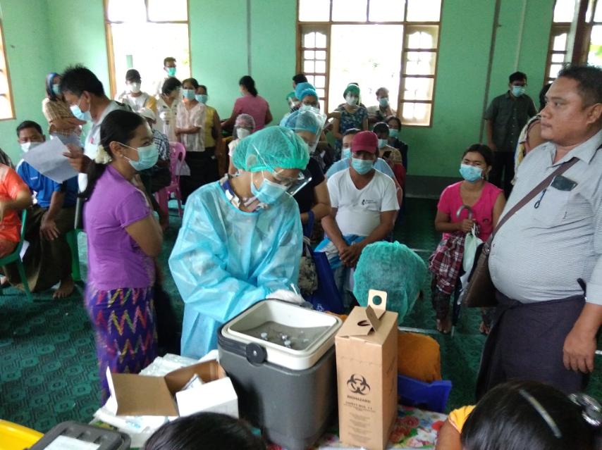 အဆိုပါ ကာကွယ်ဆေးထိုးနှံရန် လာရောက်သူများကို မြို့နယ်စီမံအုပ်ချုပ်ရေးအဖွဲ့ ဥက္ကဋ္ဌ ဦးမျိုးသူ၏ လမ်းညွှန်မှုဖြင့် ကျန်းမာရေးဝန်ထမ်းများ၊ သက်ဆိုင်ရာရပ်ကွက် အုပ်ချုပ်ရေးမှူးများနှင့် အဖွဲ့ဝင်များ၊ မီးသတ်တပ်ဖွဲ့ဝင်များ၊ ကြက်ခြေနီ တပ်ဖွဲ့ဝင်များပူးပေါင်း၍ ကျန်းမာရေး လမ်းညွှန်ချက်များနှင့်အညီ ထိုးနှံစေပြီး စာရင်းရေးသွင်းခြင်း၊ ကိုယ်အပူချိန် တိုင်းတာပေးခြင်း၊ သွေးပေါင်ချိန် စစ်ဆေးပေးခြင်းများကို ပူးပေါင်းဆောင်ရွက်ပေးလျက်ရှိပြီး ကိုဗစ်-၁၉ ရောဂါကာကွယ်ဆေးထိုးနှံခြင်းကို ဦးတည်အုပ်စုများ ကျန်ရှိမှုမရှိစေရေးအတွက် ပြည်သူ့ကျန်းမာရေး ဦးစီးဌာနမှ တာဝန်ရှိသူများက ကာကွယ်ဆေး ဆက်လက် ထိုးနှံ ပေးလျက်ရှိပြီး စက်တင်ဘာလ(၂၅)ရက်နေ့၌ အ.မ.က(၆)တွင် မြို့နယ်အတွင်းရှိ အသက် (၁၈)နှစ် ပြည့်ပြီးသော မသန်စွမ်းသူများအား ပထမအကြိမ် ကိုဗစ်-၁၉ရောဂါကာကွယ်ဆေးထိုးနှံ ပေးသွားမည်ဖြစ်ကြောင်း မြို့နယ် ကိုဗစ်-၁၉ ရောဂါကာကွယ်ထိန်းချုပ်ရေးနှင့် အရေးပေါ် တုံ့ပြန်ရေး ကော်မတီထံမှ သိရသည်။