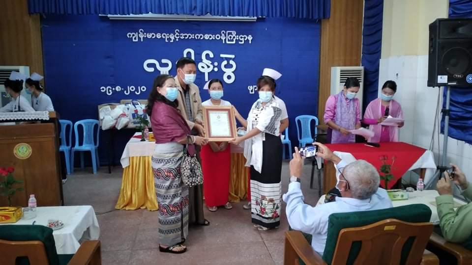 ဧရာဝတီတိုင်းဒေသကြီး၊ ဖျာပုံခရိုင်၊ ဖျာပုံမြို့ပြည်သူ့ ဆေးရုံကြီးတွင် ဆေးရုံတက်ရောက်၍ ဆေးကုသမှု ခံယူနေကြသော လူနာများ အသုံးပြုရန်အတွက်၊ အသက်ရှူစက်နှင့် ဆေးရုံသုံးပစ္စည်းများ ပေးအပ်လှူဒါန်းခြင်းအခမ်းအနားကို ယမန်နေ့ နံနက် ၁၁ နာရီအချိန်က ဖျာပုံမြို့ ပြည်သူ့ဆေးရုံကြီး အစည်းအဝေး ခန်းမ၌ ပြုလုပ်သည်။