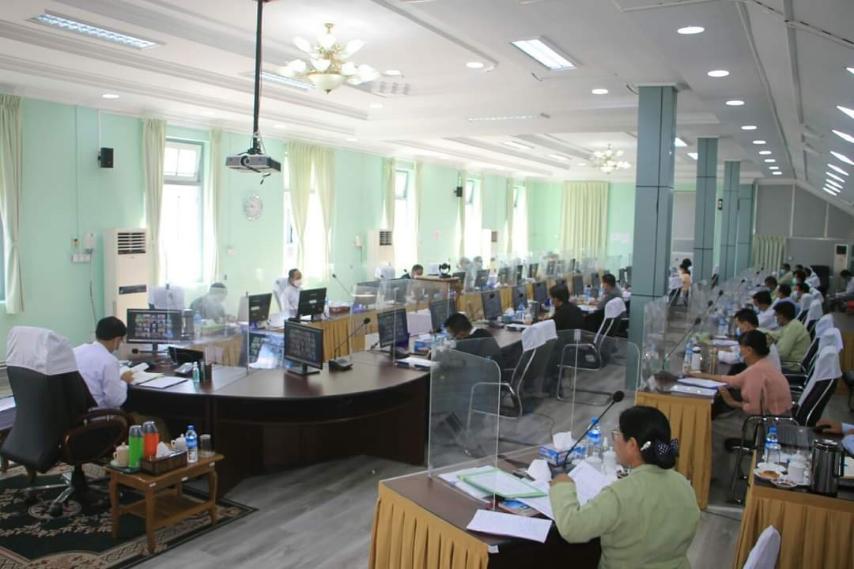 ပဲခူးတိုင်းဒေသကြီးအစိုးရအဖွဲ့ရုံး၊ တော်ဝင်ဟံသာအစည်းအဝေးခန်မ၌ စက်တင်ဘာ ၂၉ ရက် နံနက်ပိုင်းက တိုင်းဒေသကြီးအတွင်း ကဏ္ဍပေါင်းစုံ ဖွံ့ဖြိုးတိုးတက်စေရေး တိုင်းဒေသကြီးအဆင့် ဌာနဆိုင်ရာ လုပ်ငန်းညှိနှိုင်း အစည်းအဝေးအား Online Zoom Meeting System ဖြင့် ကျင်းပပြုလုပ်သည်။
