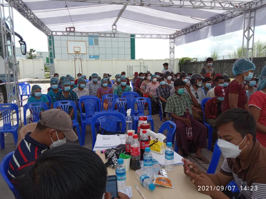 ရန်ကုန်တိုင်းဒေသကြီး တောင်ပိုင်းခရိုင် ကျောက်တန်းမြို့နယ်၌ စက်မှုဇုန်အတွင်းရှိ စက်ရုံအလုပ်ရုံများမှ ဝန်ထမ်းများနှင့် လုပ်သားများအားကိုဗစ်-၁၉ ရောဂါ ကာကွယ်ဆေး(Sonovac) ဒုတိယအကြိမ် ဆက်လက်ထိုးနှံခြင်းကို ယနေ့နံနက် ၁၀ နာရီက သတ်မှတ်နေရာ ၃ နေရာ၌ ဆက်လက်ထိုးနှံ ပေးလျက်ရှိကြောင်း သိရသည်။
