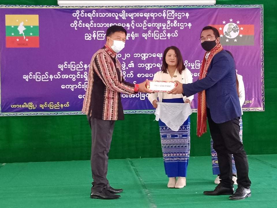 ၂၀၁၉-၂၀၂၀ ဘဏ္ဏာရေးနှစ် ချင်းပြည်နယ်အစိုးရအဖွဲ့၏ ဘဏ္ဏာရန်ပုံငွေပံ့ပိုးမှုဖြင့် ပြည်နယ်အတွင်းရှိ မြို့နယ်စာပေနှင့် ယဉ်ကျေးမှုကော်မတီများသို့ ကျောင်းပြင်ပစာပေနှင့် ယဉ်ကျေးမှုသင်တန်းအတွက် ထောက်ပံ့ငွေပေးအပ်ခြင်း အခမ်းအနားကို ယနေ့နံနက် ၉ နာရီအချိန်က တိုင်းရင်းသားလူမျိုးများရေးရာဝန်ကြီးဌာန၊ တိုင်းရင်းသားစာပေနှင့်ယဉ်ကျေးမှုဦးစီးဌာန ပြည်နယ် ညွှန်ကြားရေးမှူးရုံး အစည်းအဝေးခန်းမ၌ ကျင်းပသည်။