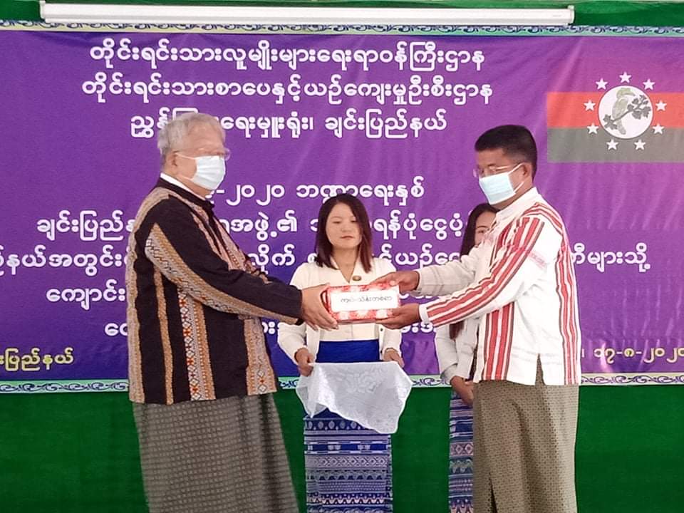 ထို့နောက် ပြည်နယ်လူမှုရေးဝန်ကြီးနှင့် ပြည်နယ်စာရင်းစစ်ချုပ် ဦးလာလ်တင်မန်းတို့က တက်ရောက်လာကြသည့် မြို့နယ် ကော်မတီများမှ တာဝန်ရှိသူများအား ထောက်ပံ့ငွေများကို ပေးအပ်ခဲ့ကြပြီးမြို့နယ် စာပေနှင့်ယဉ်ကျေးမှု ကော်မတီများကိုယ်စား ဦးလှိုင်ကျုံးက ကျေးဇူးတင်စကားပြန်လည် ပြောကြားခဲ့သည်။