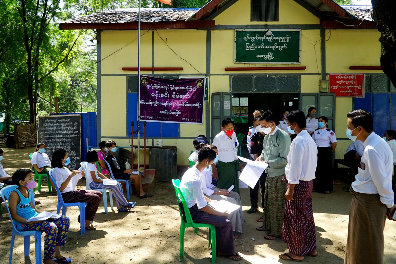 ထိုသို့ ကြည့်ရှုစစ်ဆေးရာတွင် တိုင်းဒေသကြီးအစိုးရအဖွဲ့ဝင် လူမှုရေးရာဝန်ကြီး ဦးစိုးပိုင်မြင့်က ဒေသခံပြည်သူများအား ရင်းရင်းနှီးနှီးတွေ့ဆုံ၍ လူဝင်မှုကြီးကြပ်ရေးနှင့် ပြည်သူ့အင်အား ဝန်ကြီးဌာန ပြည်ထောင်စုဝန်ကြီး၏ လမ်းညွှန်ချက်နှင့်အညီ ပြည်သူများအနေဖြင့် ကိုင်ဆောင်သင့်သည့် ကတ်ပြားတစ်မျိုးမျိုး ရရှိရေးအတွက် ပန်းခင်းစီမံချက်ဖြင့် ဆောင်ရွက် လျက်ရှိရာ တိုင်းဒေသကြီးအတွင်းရှိ ရပ်ကွက်/ကျေးရွာများအလိုက် ကွင်းဆင်း၍ နိုင်ငံသား စိစစ်ရေးကတ်များ အခမဲ့ဆောင်ရွက် ပေးလျက်ရှိပါကြောင်း၊ မကွေးတိုင်းဒေသကြီးအစိုးရအဖွဲ့ အနေဖြင့်လည်း ပြည်သူများ ကိုဗစ်-၁၉ရောဂါ ကာကွယ်နိုင်ရေးအတွက် ကိုဗစ်-၁၉ရောဂါ ကာကွယ်ဆေးများ ထိုးနှံပေးလျက်ရှိပါကြောင်းနှင့် လူမှုစီးပွားဘဝဖွံ့ဖြိုး တိုးတက်ရေးအတွက် ကြိုးပမ်းဆောင်ရွက် လျက်ရှိပါကြောင်း၊ တိုင်းဒေသကြီးအတွင်းရှိ အခြေခံပညာကျောင်းများရှိ အသက်(၁၂)နှစ်အထက် အခြေခံပညာ အလယ်တန်း၊ အထက်တန်း ကျောင်းသား၊ ကျောင်းသူများကိုလည်း ကိုဗစ်-၁၉ရောဂါ ကာကွယ်ဆေးများ ထိုးနှံပေးနိုင်ရေးအတွက် စီမံဆောင်ရွက် လျက်ရှိရာ ပြည်သူများအနေဖြင့်လည်း ပူးပေါင်းပါဝင် ဆောင်ရွက်စေလိုကြောင်း ပြောကြားသည်။