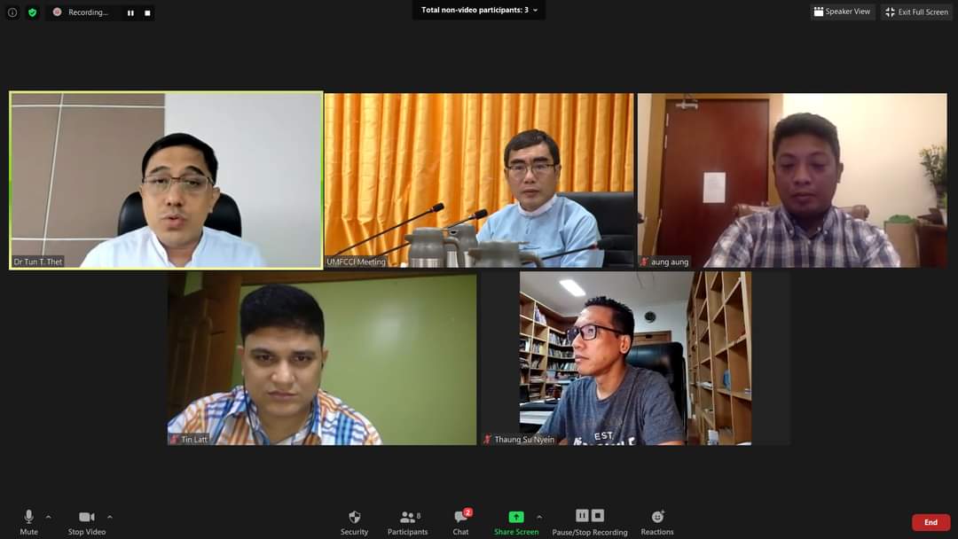 လမ်းမတော်မြို့နယ် UMFCCI တွင် Myanmar Digital Economy Association (MDEA) ၏ ဗဟိုအလုပ်အမှုဆောင် အဖွဲ့အစည်းအဝေးကို ယမန်နေ့ ညနေပိုင်းတွင် ကျင်းပခဲ့ရာ MDEA အသင်းဖွဲ့စည်းခဲ့သည်မှာ ၂၀၂၀ ခုနှစ်သြဂုတ်လ ၁၅ရက်နေ့တွင် တစ်နှစ်ပြည့်ခဲ့ပြီဖြစ်သဖြင့် နှစ်ပတ်လည် အသင်းသား အစည်းအဝေးမကြာမီ ကျင်းပနိုင်ရေး MDEA ၏ ရှေ့ဆက်ဆောင်ရွက်မည့် လုပ်ငန်းစဉ်များ E- commerce strategy အတွက် အဖွဲ့ဝင်များထံမှ သဘောထား မှတ်ချက်တောင်းခံခြင်း၊ လုပ်ငန်းမြန်ဆန် သွက်လက်ရေးအတွက် Project Member Team ဖွဲ့စည်းရေး Myanmar 4.0 Concept Paper တို့နှင့် စပ်လျဉ်း၍ တက်ရောက်လာသည့် အဖွဲ့ဝင်များနှင့် အကြံပြုဆွေးနွေးခဲ့ကြသည်။