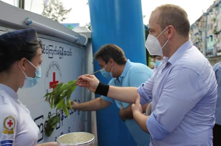 ထို့နောက် အသင်းဥက္ကဋ္ဌနှင့် အဖွဲ့ဝင်များသည် ဒဂုံမြို့သစ်(ဆိပ်ကမ်း)မြို့နယ်အသင်းခွဲမှ ဖွင့်လှစ်ထားသည့် ကြက်ခြေနီ အထွေထွေရောဂါကု(အခမဲ့) ဆေးခန်းတွင် ပြည်သူများအားကျန်းမာရေး စောင့်ရှောက်မှုပေးနေကြသော အသင်းဝင် ဆရာဝန်များ၊ ကူညီဆောင်ရွက်ပေးနေကြသော အသင်းဝင် ကြက်ခြေနီတပ်ဖွဲ့ဝင် စေတနာ့လုပ်အားရှင်များအား ရင်းရင်းနှီးနှီးတွေ့ဆုံ အားပေးစကား ပြောကြားခဲ့ကြောင်း သိရသည်။