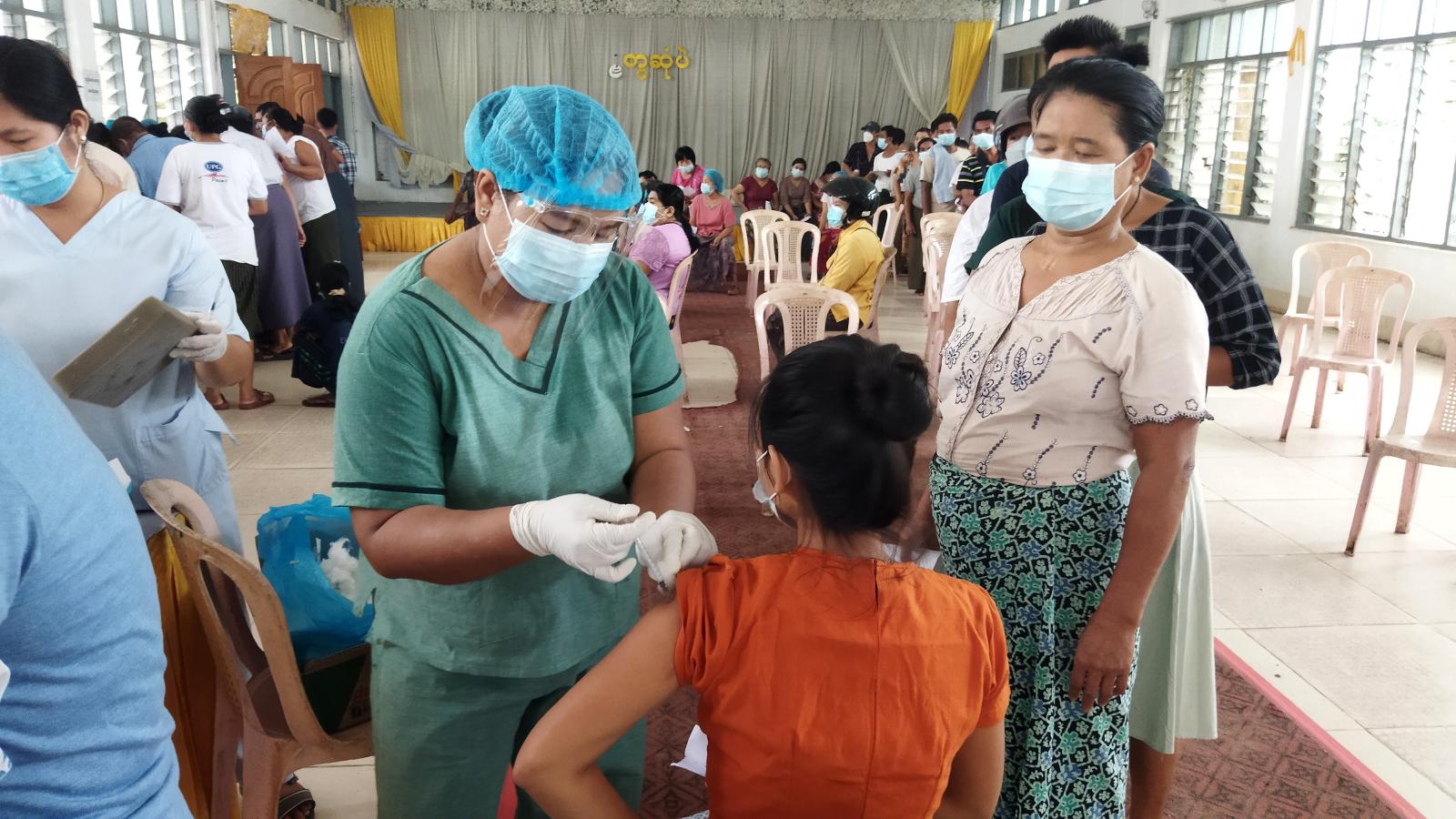 ပဲခူးတိုင်းဒေသကြီး တောင်ငူခရိုင် တောင်ငူမြို့နယ်အတွင်း ကိုဗစ် - ၁၉ ရောဂါကာကွယ်ဆေး ပထမအကြိမ်ထိုးနှံမည့်သူများအား တတိယအသုတ် ဦးစားပေးအုပ်စုအလိုက် ဆေးထိုးစုရပ် အသီးသီးတွင် ဆက်လက်ထိုးနှံပေးလျှက်ရှိကြောင်း ယနေ့နံနက်ပိုင်းက မြို့နယ်ပြည်သူ့ကျန်းမာရေး ဦးစီးဌာနမှ သိရသည်။