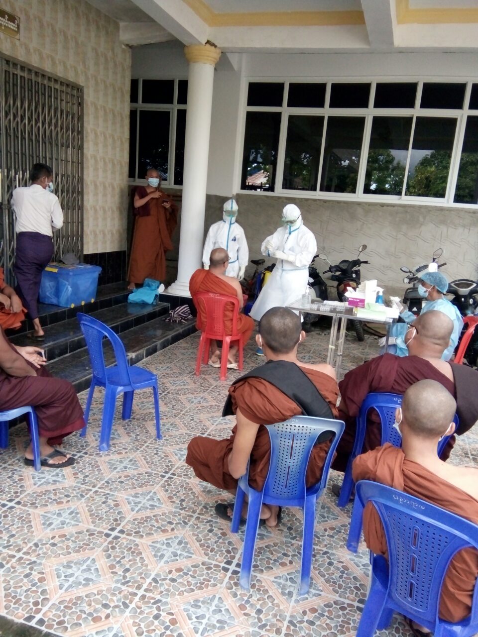 ထိုသို့စစ်ဆေးဆောင်ရွက်ရာတွင် မာဂဓကျောင်းတိုက်မှသံဃာ ၁၄ ပါး၊ ပညာရာမကျောင်းတိုက်မှ သံဃာ ၂၉ ပါး၊ မဟာစည်ရိပ်သာမှ သီလရှင်(၁)ပါးနှင့် လူပုဂ္ဂိုလ်(၄) ဦးတို့အား ကိုဗစ်-၁၉ ရောဂါပိုးရှိမရှိကို မြို့နယ်ပြည်သူ့ ကျန်းမာရေးဦးစီးဌာနမှ ဦးစီးမှူးဒေါက်တာတင်မူမြင့်၏ လမ်းညွှန်မှုဖြင့် ကျန်းမာရေး ဝန်ထမ်းများက နှာခေါင်းတို့ဖတ်၊ အာခေါင်တို့ဖတ် ရယူစစ်ဆေး ဆောင်ရွက်ခဲ့ရာ ကိုဗစ်-၁၉ ရောဂါပိုး တွေ့ရှိမှုမရှိ ကြောင်းသိရသည်။ အဆိုပါ ကိုဗစ်-၁၉ ရောဂါပိုး စစ်ဆေးပေးရာတွင် ကျန်းမာရေးဝန်ကြီးဌာန၏ လမ်းညွှန်ချက်များနှင့်အညီ မြို့နယ်ကျန်းမာရေး ဝန်ထမ်းများက စစ်ဆေးဆောင်ရွက်ပေးခဲ့ကြောင်းသိရသည်။